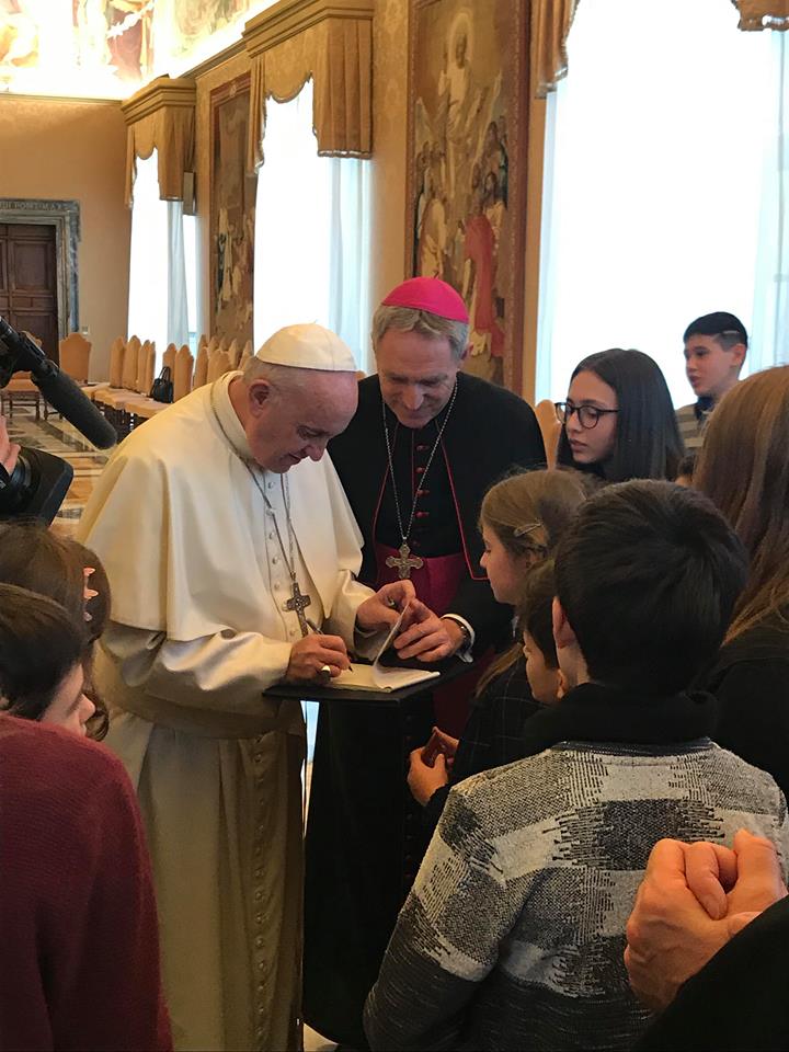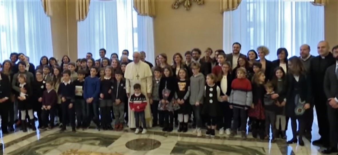 “È un dono di Dio, di cui sempre ringraziare, il fatto di avere degli adulti, sacerdoti e laici, che si occupano con tanto amore della vostra formazione umana e cristiana; e quindi dovete pregate per loro, perché abbiano sapienza e pazienza per fare bene questo servizio!”, l’invito del Papa, che ha fatto poi riferimento al cammino formativo dell’Acr, incentrato sul tema dell’incontro tra Gesù e le due sorelle Marta e Maria di Betania, così come è narrato dall’evangelista Luca. “Partendo da questo episodio, voi e gli altri ragazzi di tutte le diocesi italiane state riscoprendo la chiamata ad essere amici di Gesù, a conoscerlo sempre meglio e incontrarlo ogni giorno nella preghiera, per poter essere suoi missionari”, l’omaggio all’Acr: “Si tratta di trasmettere un annuncio bello, un messaggio di salvezza ai vostri coetanei, e anche agli adulti. E qual è questo messaggio? Che tutti siamo amati dal Signore: questa è la vera, grande, buona notizia che Dio ha dato al mondo con la venuta del suo Figlio Gesù in mezzo a noi”. “Tutti noi siamo amati dal Signore: ci ama, tutti insieme, uno a uno!”, ha esclamato il Papa a braccio: “È bello questo”. “Sono contento che, unito al cammino formativo, portate avanti sempre un gesto, un’iniziativa di carità”, l’altro apprezzamento di Francesco: “Quest’anno è destinata a sostenere il diritto al cibo e la dignità di chi lavora la terra. Apprezzo molto questa scelta, e la incoraggio”. Infine il ringraziamento “per il vostro dono che andrà all’Elemosineria Apostolica, una cosa molto utile, cioè dei prodotti che serviranno per l’igiene personale di tante persone povere. Grazie di aver pensato a questo!”. “Cari ragazzi, a Natale, ancora una volta, Gesù vuole nascere in voi, nel vostro cuore, per donarvi la gioia vera che nessuno potrà togliervi”, l’augurio per questo tempo liturgico: “E voi, offrite questa gioia agli altri ragazzi che vivono situazioni di sofferenza, momenti di difficoltà, specialmente a quelli che vedete più soli e magari maltrattati”.