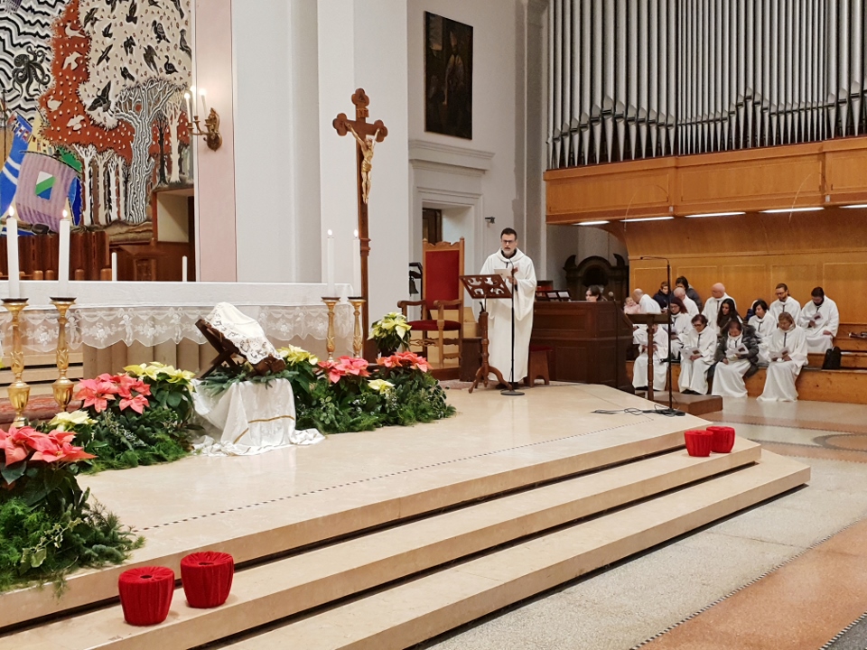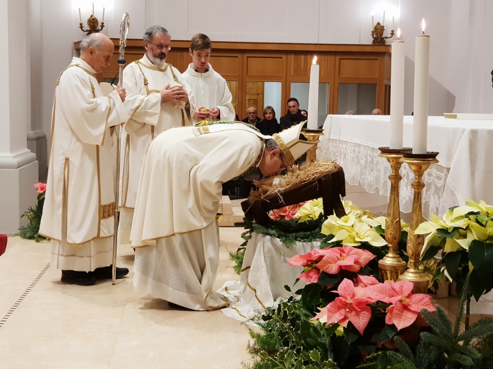 “Nella grotta noi adoriamo l’amore di Dio che si fa carne nel corpo vergine di Maria – ha spiegato il vescovo Bresciani – e nasce nel più umile dei luoghi della terra: una grotta maleodorante che serviva da riparo agli animali della campagna di Betlemme. Non c’era altro posto per lui in paese.