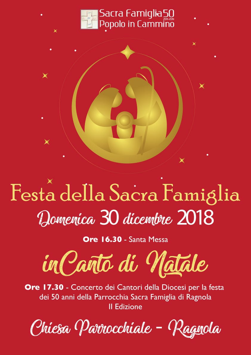 SAN BENEDETTO DEL TRONTO – La Parrocchia Sacra Famiglia festeggia tutte le coppie ed in modo particolare quelle che, nell’anno 2018, celebrano i 50 anni di matrimonio. In un invito a loro indirizzato dal parroco don Francesco Ciabattoni si legge: “Il giorno 30 dicembre nella nostra chiesa Sacra Famiglia, come è tradizione, festeggiamo tutte le famiglie con una Solenne Santa Messa, in modo particolare saluteremo le coppie che ricordano alcuni particolari anniversari vissuti nel 2018 – 1 anno, 10, 25, 40, 50 e 60 anni di matrimonio.”
