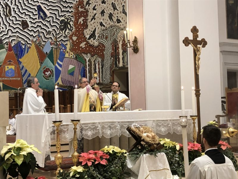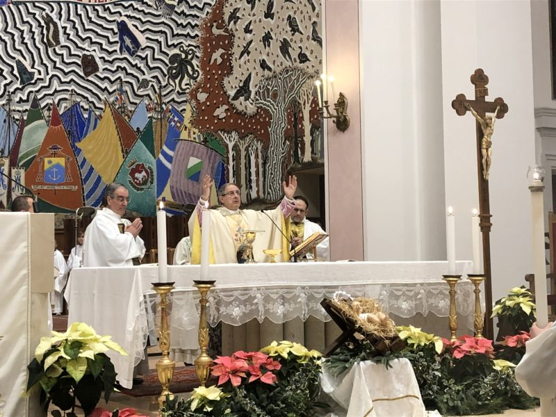 Questo è, con i mezzi suoi propri, il compito della politica che si voglia a vero servizio della pace, cioè di tutti cittadini. Ma è anche, con i mezzi suoi propri, il compito della Chiesa che in questo inizio d’anno ci presenta ancora una volta come modello Maria, la madre di Gesù che si mette a servizio della vita e dona a tutti noi ciò che ha di più caro: Gesù, dono di un cuore non chiuso nell’egoismo, ma attento ai bisogni di pace dell’umanità intera. Ella è la madre di Dio e la madre nostra, di tutti noi, nessuno escluso. Noi in questa nostra cattedrale la veneriamo sotto il titolo di Madonna della Marina.