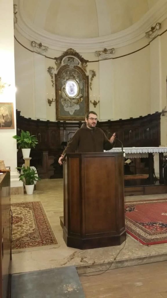 Padre Michele Massaccio, attuale padre guardiano del Convento, ha dapprima salutato gli intervenuti, professi della fraternità di Grottammare, professi delle fraternità limitrofe, nonché semplici concittadini che hanno accolto l’invito rivolto a tutti, e dopo il canto del “Laudato sii”, il signor Gianluca Traini, abitante nel circondario del Convento e valido ausilio nelle ricerche storiche, ha illustrato l’Ordine Francescano Secolare nei documenti storici locali.