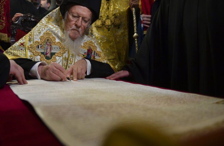 Successivamente, il patriarca Bartolomeo, il metropolita Epifanio e il presidente Poroshenko hanno lasciato la chiesa ed hanno avuto un incontro. Poi, sono tornati nella chiesa di san Giorgio e il patriarca Bartolomeo e il metropolita Epifanio hanno elevato una preghiera, in seguito alla quale il capo del Patriarcato ecumenico ha apposto la propria firma sul documento (Tomos) che attesta ufficialmente l’indipendenza della Chiesa ucraina. La firma del Tomos si è svolta nel mezzo della chiesa di san Giorgio e il documento è entrato in vigore dal momento della sua firma. La Chiesa ucraina è diventata così la quindicesima Chiesa ortodossa locale.