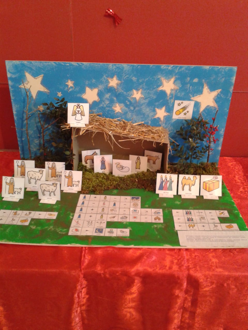 Dopo una introduzione generale della presidente sulla finalità della mostra: “atta a sviluppare la manualità ed espressività dei ragazzi , puntualizzando ogni anno un aspetto diverso e mantenendo, al tempo stesso , viva la tradizione” alcuni rappresentanti degli allievi ISC : Davide G. e Vittorio V., hanno presentato il loro lavoro e quello dei compagni. Vasto spazio è stato dedicato alla presenza di personaggi presepali di varie etnie, al mappamondo inserito nel presepe o il presepe dentro il mappamondo con uso di materiali di recupero. Molto originale è risultato quello realizzato con scrittura simil-pittogramma e simboli ovvero la Caa (comunicazione aumentativa alternativa che permette di sostituire , aumentare e integrare il linguaggio verbale).