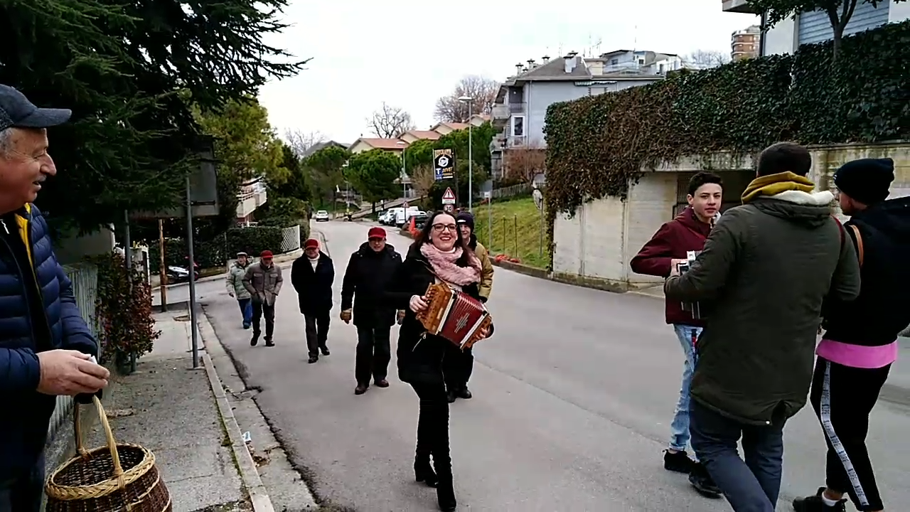 ACQUAVIVA PICENA – Ad Acquaviva Picena i Cantori di sant’Antonio abate hanno iniziato la questua itinerante per le vie del paese e anche nei paesi limitrofi. L’associazione “San Francesco” guidata dal presidente Delio Camela si è avvalsa della collaborazione di alcuni giovani musicisti: Tiziana, Alessandro, Mariano e Riccardo che con i loro organetti della tradizione hanno allietato la questua con canti popolari, immancabile la canzone dedicata al santo Anacoreta che si festeggerà ad Acquaviva domenica 20 gennaio: “Sant’Antonio della rocca”, canzone tipica acquavivana. La questua proseguirà nei prossimi giorni, il ricavato è destinato alla “Festa dell’anziano” e al pranzo che si svolgerà domenica 17 marzo presso il ristorante “La Fonte” di Offida.
