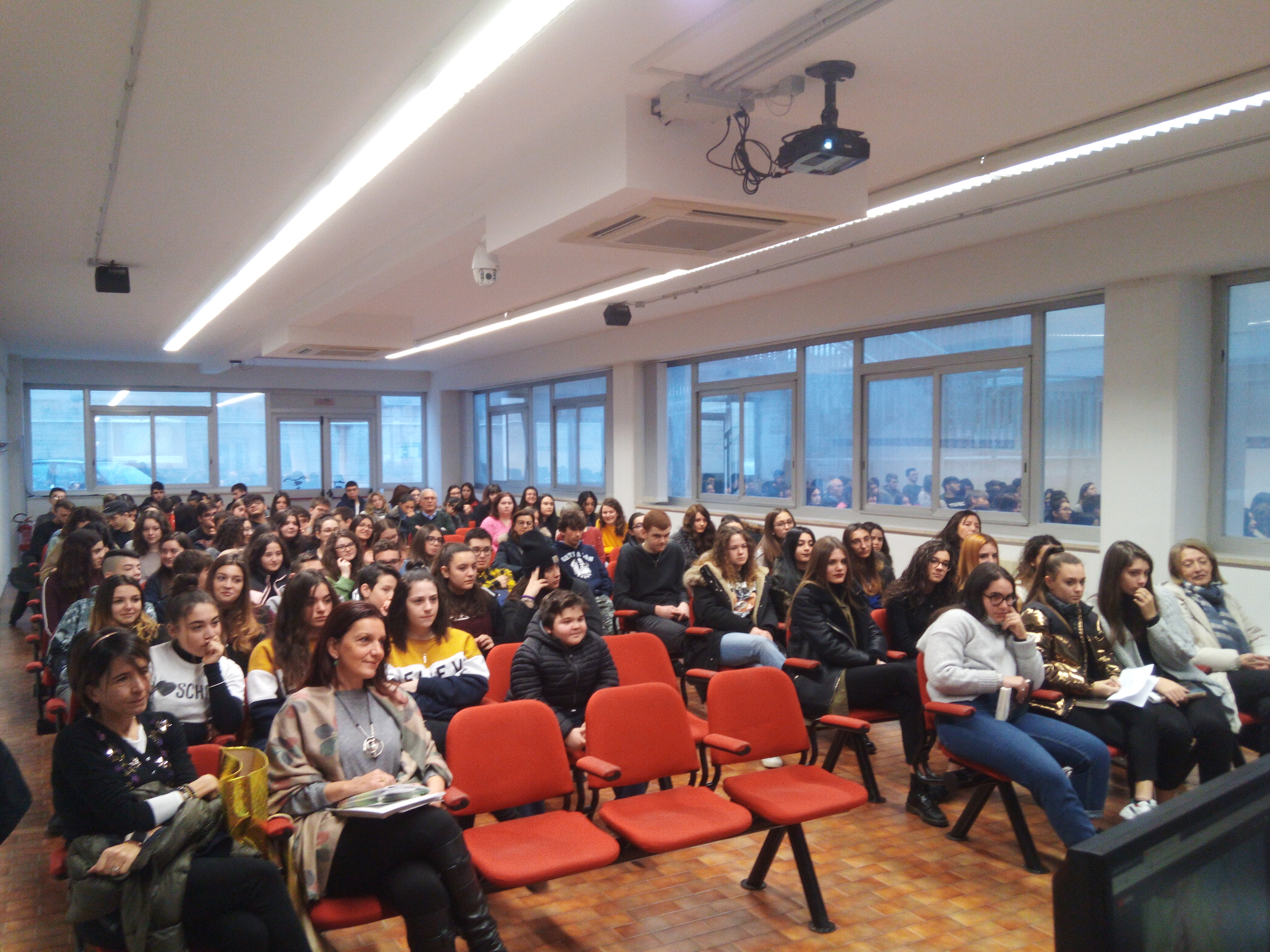 SAN BENEDETTO DEL TRONTO – La mattina di lunedì 14 gennaio 2019 cinque classi dell’Istituto di Istruzione Superiore “A.Capriotti”, insieme al Dirigente scolastico, prof.ssa Elisa Vita, e ad alcuni docenti, si sono ritrovate nell’aula magna della scuola per partecipare a un incontro con lo scrittore Carmine Abate, autore del romanzo “Le rughe del sorris”o.