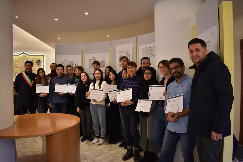 MONTEPRANDONE – «Un’esperienza che aiuta a non avere paura dell’altro. Sono fiero di lavorare in un’università che, nonostante tutto, continua a lavorare sull’internazionalizzazione, accendendo tra giovani di tutto il mondo nuovi motori d’amicizia e collaborazione». Sono parole del professor Salvatore Santuccio dell’UniCam. Lui e la collega Enrica Pieragostini sono stati i referenti del “VernaDoc” concluso ieri, giovedì 17 gennaio, nel cuore di Monteprandone. Vi hanno partecipato 30 studenti italiani e 16 provenienti da varie parti del mondo, come: Cina, Ucraina, Iran, Malesia, Irlanda, Finlandia Thailandia e Bhutan. In sintesi: i giovani hanno osservato da vicino alcune peculiarità di Monteprandone (antichi palazzi, portoni, archi e quant’altro) riproducendo tutto su supporti cartacei, ma anche digitali. Conoscere l’architettura e, al contempo, conoscere anche persone e culture diverse. Così cadono anche le “barriere mentali” che, spesso, si ha nei confronti del diverso, dell’altro. «In questo caso, il cosiddetto altro lavora fianco a fianco con te» ha proseguito Santuccio. Insomma: si disegna tutti insieme e nasce un bel senso di comunità, che i ragazzi hanno vissuto anche al di là del lavoro, con pranzi e cene insieme. «La nostra città esce vivificata da questa esperienza. I residenti del centro, in larga parte anziani, hanno accolto gli studenti come fossero loro nipoti» ha detto il sindaco Stefano Stracci, presenziando alla cerimonia di consegna degli attestati di partecipazione, insieme con il vice Sergio Loggi. Presso la sala consiliare di piazza dell’Aquila è stata anche inaugurata una mostra che vede esposti i lavori realizzati dai ragazzi.