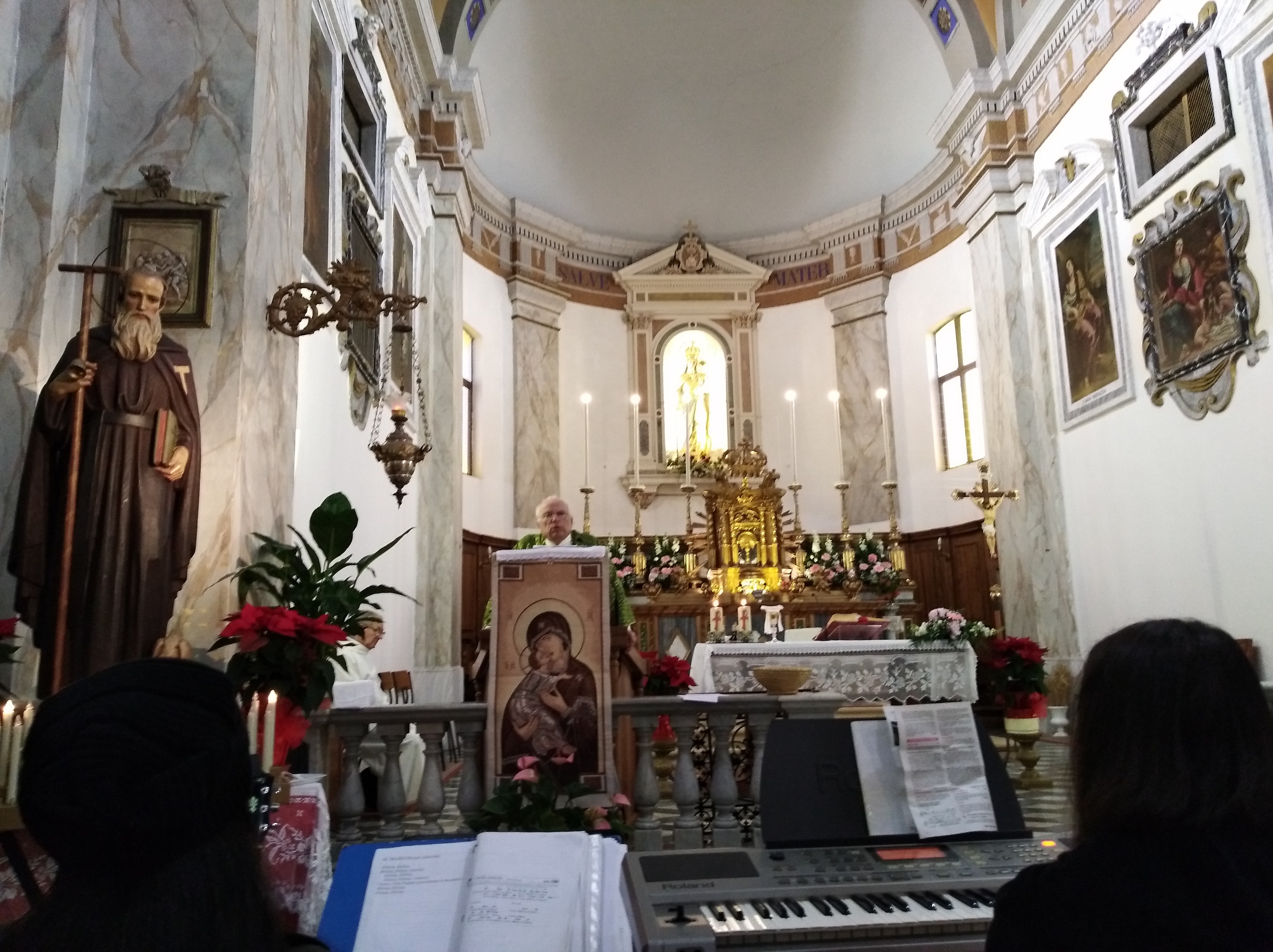 ACQUAVIVA PICENA – Ad Acquaviva Picena domenica 20 gennaio con una solenne processione è stato onorato sant’Antonio abate. Nella Messa delle ore 10:00 presso il convento di san Lorenzo padre Giuliano Del Medico nell’omelia ha detto: “ Nell’episodio del Vangelo dove si parla delle nozze di Cana, vediamo come l’intervento di Maria ha salvato una festa di matrimonio, a Gesù ha detto di compiere un miracolo per non rovinare la festa, ha chiesto di trasformare l’acqua in vino. La Beata Vergine è corredentrice insieme al Figlio Gesù Cristo della salvezza dell’umanità. Tutte le preghiere che salgono a lei trovano un cuore di mamma sempre pronto ad aiutare. Tanti sono i segni che il Signore ci invia per capire quale sia la nostra strada, sant’Antonio aveva capito cosa Dio voleva da lui, egli donò tutti i suoi beni ai poveri e si mise a lavorare per guadagnarsi il pane quotidiano per lui e sua sorella, nonostante tutto donava parte del suo pranzo ai poveri. Sant’Antonio era molto ricco, ma comprese che le ricchezze materiali non valgono nulla, la vera ricchezza è solo quella che viene da Dio”. Dopo la Messa delle 11.00 si è snodata la processione, durate la quale sono stati benedetti gli animali e i campi. La festa si è conclusa con i canti popolari di sant’Antonio abate.