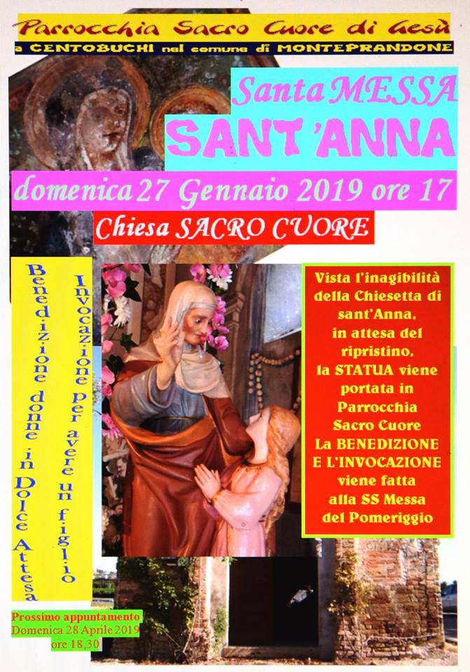 Al termine della Santa Messa di domani, si terrà la Benedizione delle donne in Dolce attesa e verrà invocata l’intercessione di Sant’Anna per quelle che desiderano il dono della Maternità”.