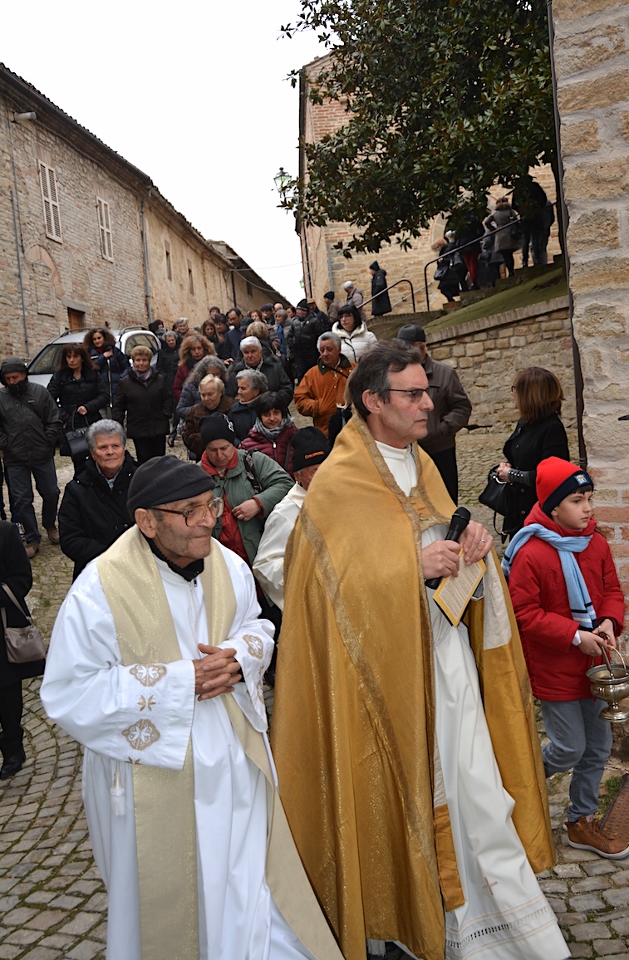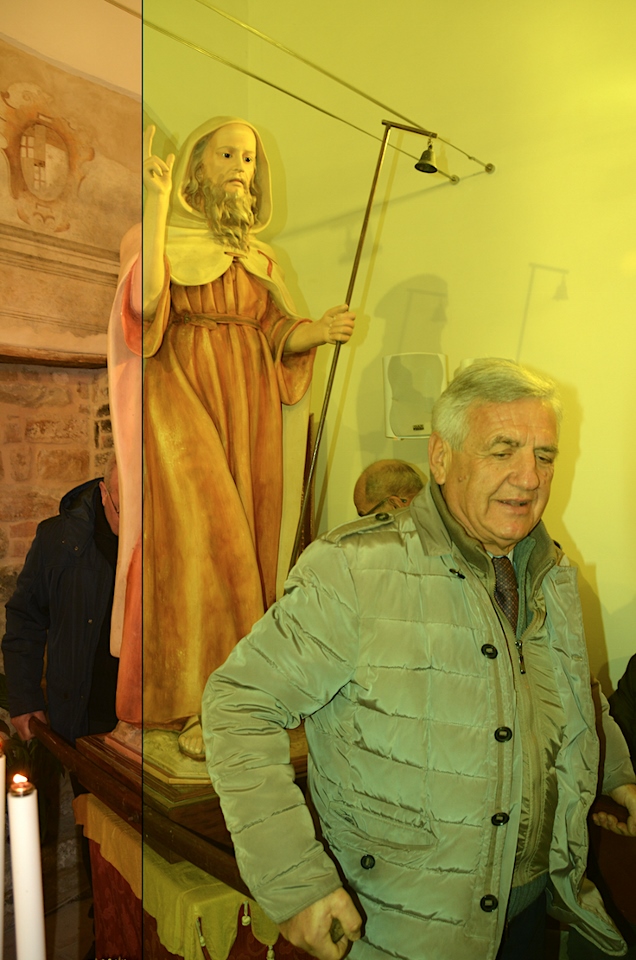 La messa, celebrata dal Priore-Parroco Agostino Maiolini, con al suo fianco Padre Giovanni e accompagnata dalle note della sempre presente “Corale Petrocchini”, era partecipatissima e vedeva il simulacro del Santo Antonio Abate piazzato al centro della Chiesa. Ai suoi piedi le immancabili “Panette” benedette destinate agli animali (ma che sono graditissime anche ai loro padroni!).