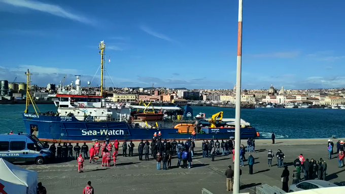 1Sono finalmente in corso a Catania le operazioni di sbarco dalla nave Sea Watch3 le 47 persone migranti soccorse in mare il 19 gennaio, ferme per giorni nel porto di Siracusa. La nave ieri sera ha avuto problemi al verricello ed è stata scortata da due motovedette della guardia costiera. Tanti gli abbracci con l’equipaggio, poi il capomissione ha aperto la corda della scaletta e a bordo è salito un team di esperti, soccorritori, mediatori culturali e poliziotti. I 15 minori saranno trasferiti in centri specializzati. “Siamo contenti che il calvario sia finito per i nostri ospiti – sta twittando Sea-Watch Italy -. Auguriamo loro il meglio. Speriamo che l’Europa possa accoglierli e permettergli di vivere come meritano”. Le persone salvate non hanno bagagli con sé, solo un asciugamano al collo e un sacchetto di plastica fornito dalla Croce rossa italiana. Appena toccano terra viene loro assegnato un numero e fotografati dalle forze dell’ordine per le procedure di identificazione.