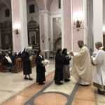 DIOCESI – Sabato 2 febbraio i religiosi e le religiose della diocesi di San Benedetto del Tronto – Ripatransone – Montalto si sono ritrovati presso la Cattedrale della Madonna della Marina in occasione della XXIII Giornata della Vita Consacrata. Una volta benedette le candele nel cortile parrocchiale, i sacerdoti, i religiosi, le religiose e i fedeli si sono diretti processionalmente in chiesa. La Santa Messa è stata celebrata dal Vicario Generale don Domenico Spina. Riportiamo integralmente la sua omelia: