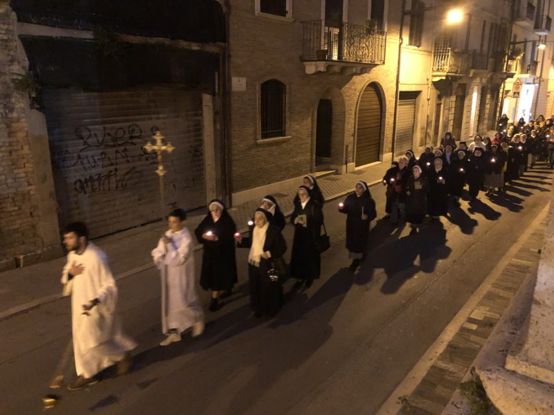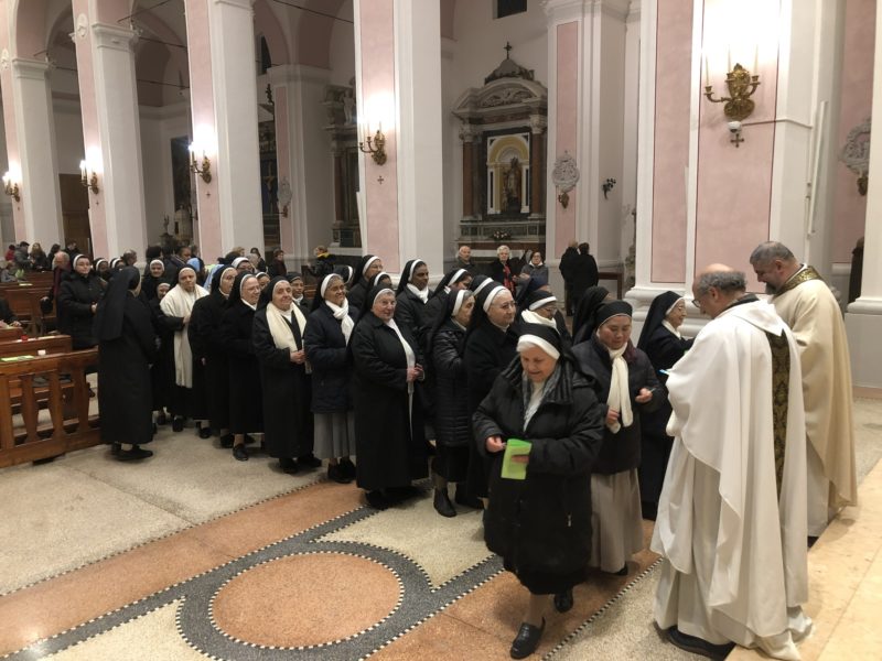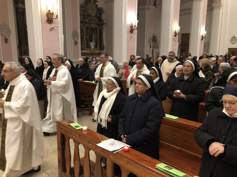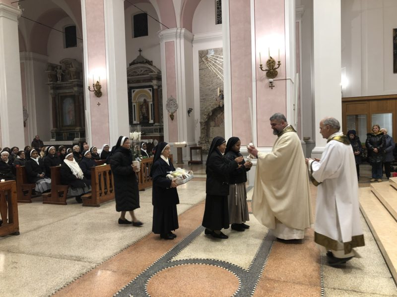 DIOCESI – Sabato 2 febbraio i religiosi e le religiose della diocesi di San Benedetto del Tronto – Ripatransone – Montalto si sono ritrovati presso la Cattedrale della Madonna della Marina in occasione della XXIII Giornata della Vita Consacrata. Una volta benedette le candele nel cortile parrocchiale, i sacerdoti, i religiosi, le religiose e i fedeli si sono diretti processionalmente in chiesa. La Santa Messa è stata celebrata dal Vicario Generale don Domenico Spina. Riportiamo integralmente la sua omelia: