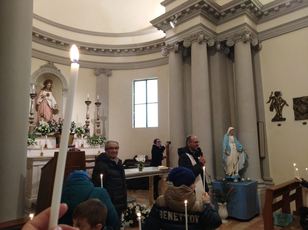 ACQUAVIVA PICENA – Ad Acquaviva Picena sabato 2 febbraio si è celebrata la festa della Candelora, la festa cioè della presentazione di Gesù al Tempio. La comunità parrocchiale si è riunita nella chiesa medievale di san Rocco alle ore 15:00 per accendere e benedire le candele. I fedeli, le famiglie, i tanti bambini e il gruppo scout di Acquaviva si sono poi incamminati in solenne processione verso la chiesa parrocchiale di san Niccolò. Alle 15.30 circa ha avuto inizio la Celebrazione Eucaristica presieduta dal parroco don Alfredo.