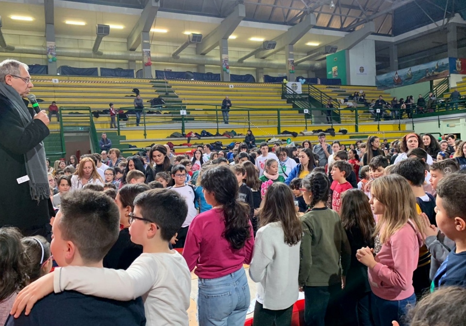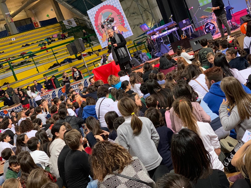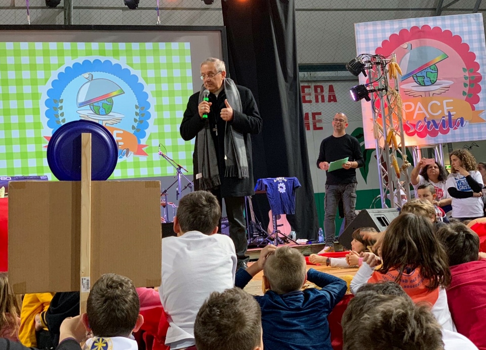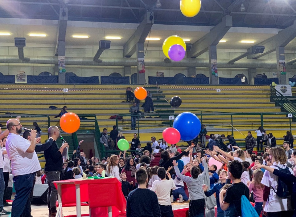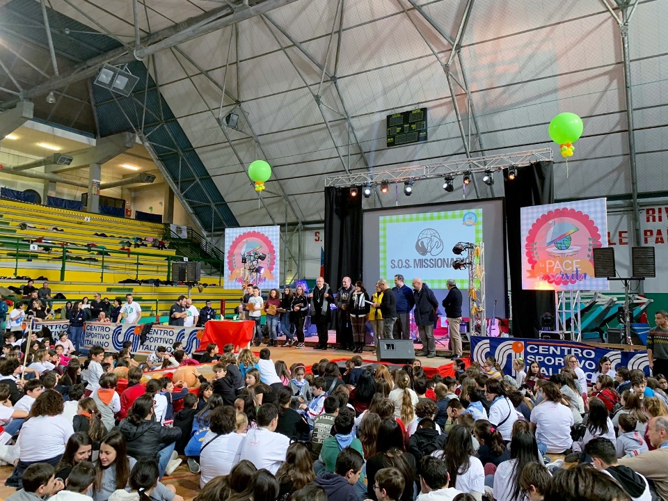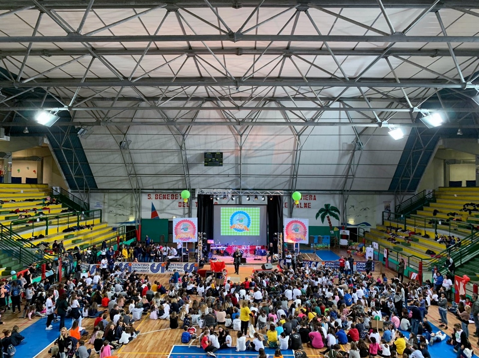Nel palasport non sono stati accolti solo i bambini, ma anche molti genitori, educatori e sacerdoti.