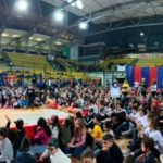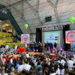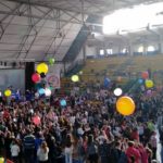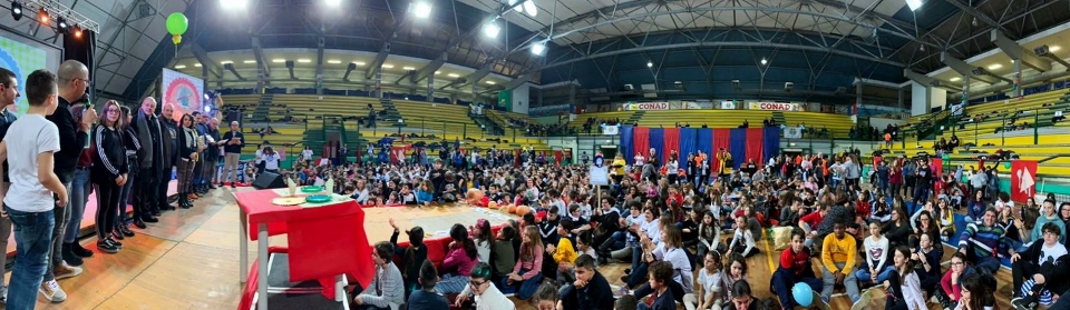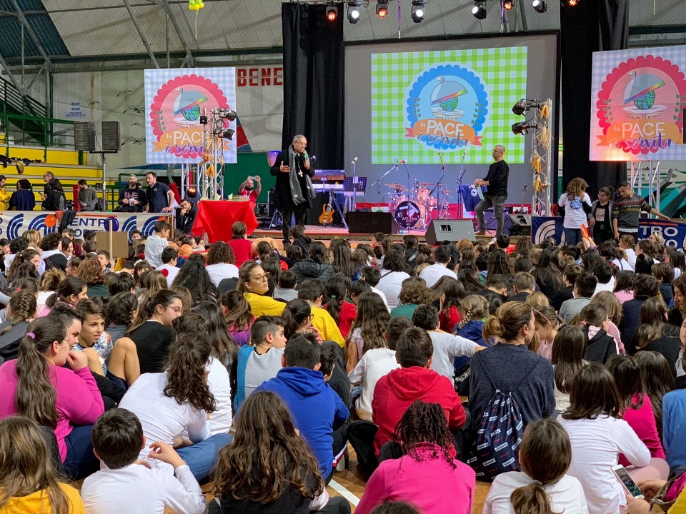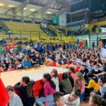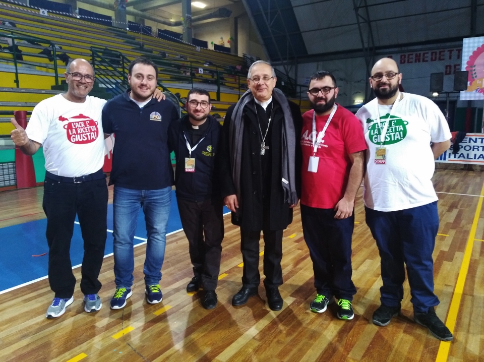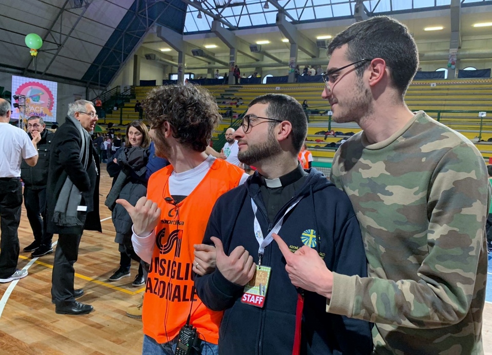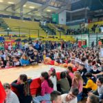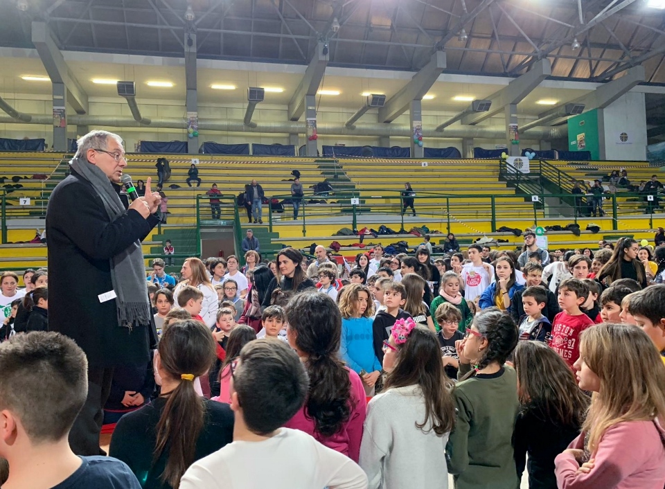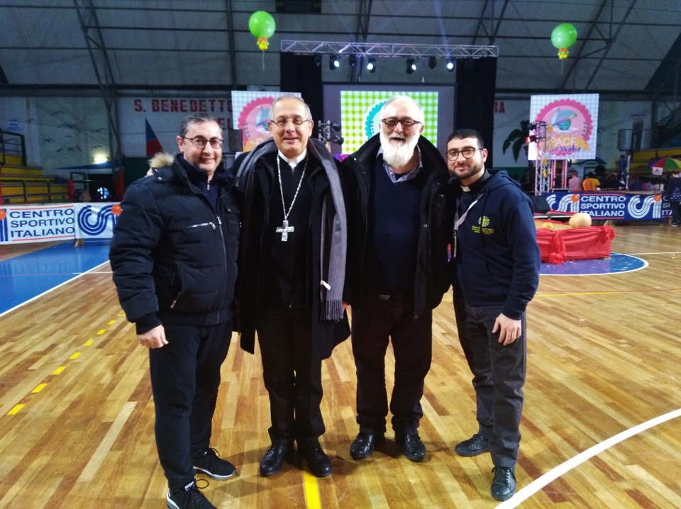 Nel palasport non sono stati accolti solo i bambini, ma anche molti genitori, educatori e sacerdoti.