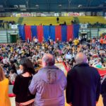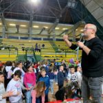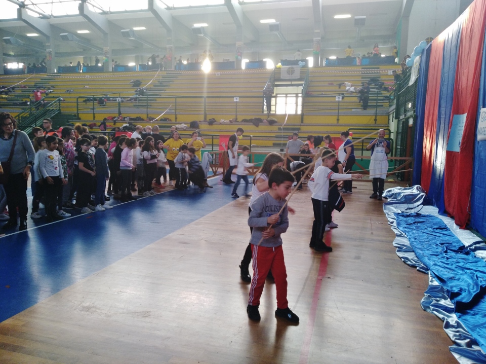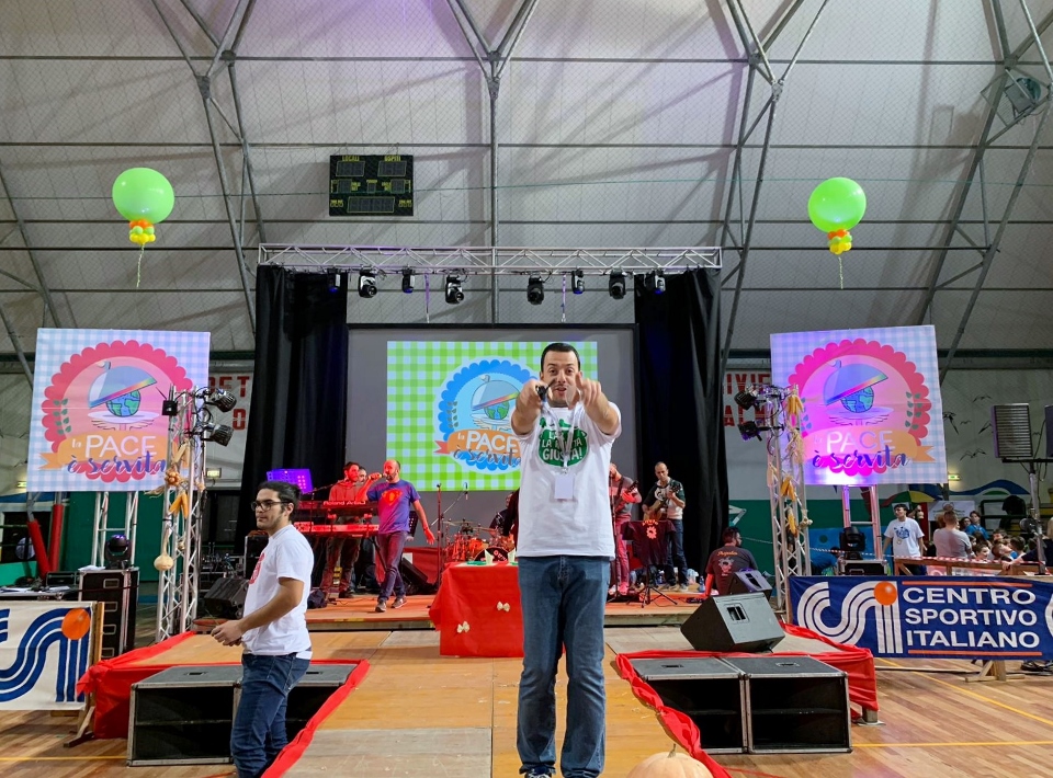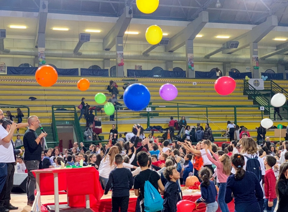 Don Pino Raio assistente ACR ha guidato il momento di preghiera sottolineando il tema della Pace: “Noi dobbiamo essere testimoni di pace, da questo palazzetto deve diffondersi un nuovo messaggio di pace. Gesù ha testimoniato la pace, ci ha dato un messaggio di salvezza, ci ha amato fino a donare la sua vita. L’amore di Gesù verso di noi è enorme, anche noi dobbiamo seguire il suo esempio, abbiamo nel nostro cuore una nuova tipologia di Amore dopo aver ascoltato la parola di Gesù. Ci viene ricordato nel Vangelo che noi dobbiamo diffondere pace ovunque e se viene accolta è un bene, altrimenti ci tornerà indietro. C’è tanto lavoro nel mondo, purtroppo c’è tanto male quindi c’è bisogno della testimonianza e dell’opera di tutti noi”. Dopo aver letto insieme la preghiera della pace i bambini sono stati poi divisi per fasce di età e accompagnati dagli educatori presso gli stand per giocare insieme e divertirsi, hanno inoltre potuto familiarizzare con i loro coetanei di altre parrocchie e questo ha reso il pomeriggio ancora più coinvolgente.