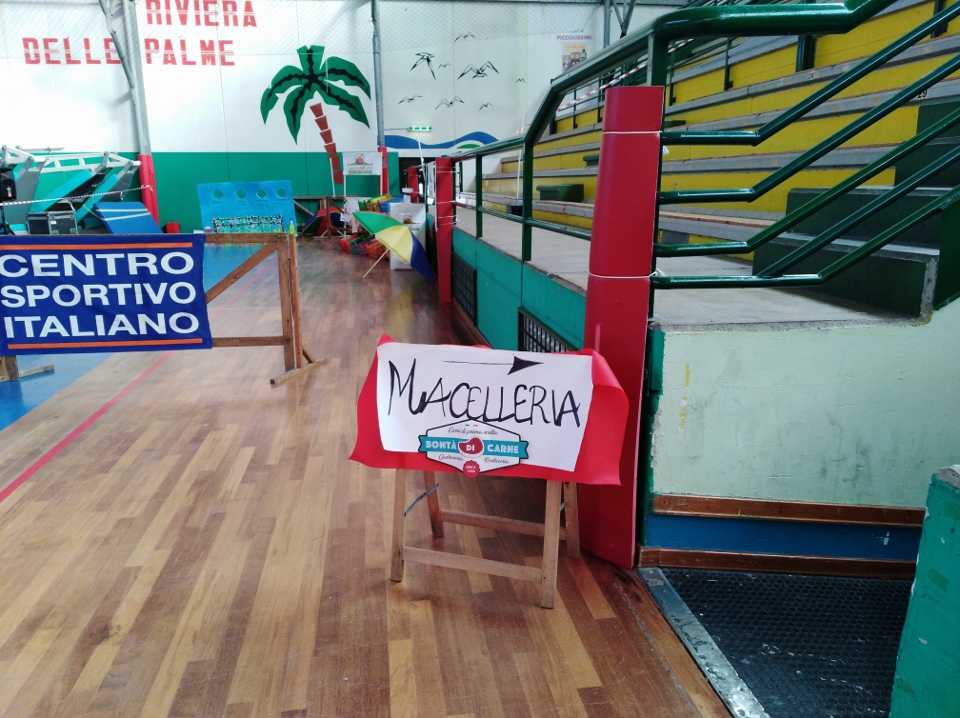 “Ci prendo gusto” il titolo scelto a cui si richiamava anche l’ambientazione presso il Palasport: cucina, pescheria, forno, negozi di frutta e verdura, enoteca, macelleria e quant’altro.