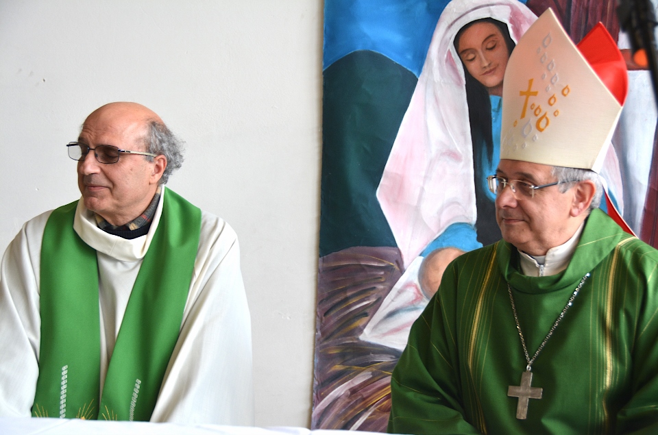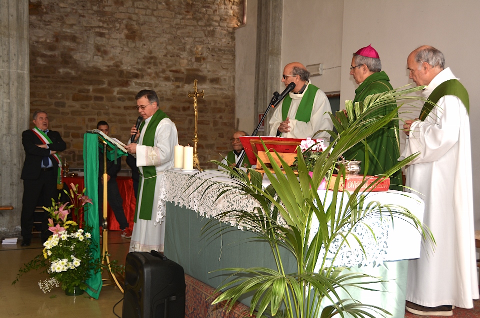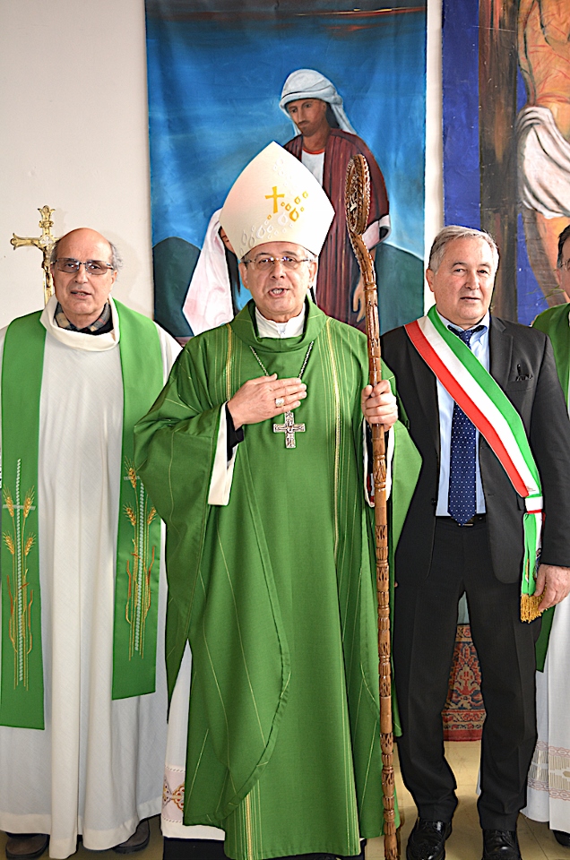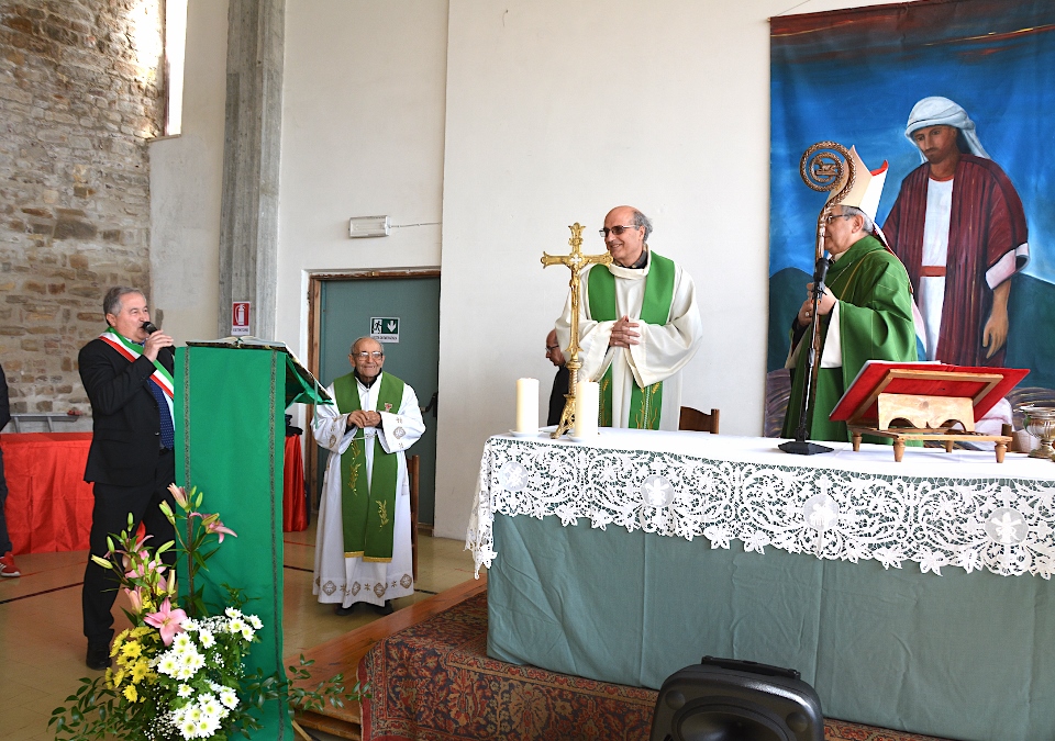 “Siamo molto lieti, Eccellenza, di averla ancora una volta nella nostra comunità. Innanzitutto vogliamo ringraziarla per aver lasciato tra noi Padre Giovanni. Lui riesce a farci rivivere, con la fantasia, le sue avventure tra le sue amate montagne che di tanto in tanto si diletta a raccontarci e, nei bambini, ha instillato il desiderio di viverle loro stessi. La ringraziamo per aver scelto per noi Padre Emanuele, dei Frati Minori francescani, e ringraziamo Padre Emanuele di aver accettato di diventare nostro parroco; sarà bello incontrarlo nelle nostre strade! La nostra è una comunità affettuosa e generosa, ma al tempo stesso fragile! Ha costante bisogno di una guida, che la raduni e la conduca dinanzi al Signore, affinché non si disperda e disorienti!… La presenza francescana minorita nella nostra comunità parrocchiale è attestata fin dall’11 dicembre 1259. …. La prima comunità francescana fu minorita e si stanziò nella zona che ora corrisponde al Santuario Agreste di Santa Maria in Camurano. La chiesa, con annesso convento, ospitò in seguito una piccola comunità monastica, sempre francescana, ma del Terzo Ordine Regolare. …