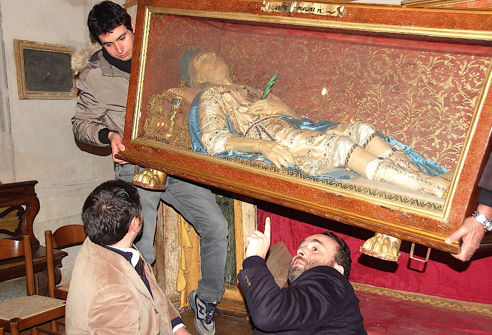 Il Prof Ghilardi, inoltre, s’incuriosì e si soffermò soprattutto nell’osservazione dell’urna contenente il Santo Paolino Martire e del Suo corpo allora posti all’interno di uno degli altari laterali della Chiesa di Sant’Agostino!