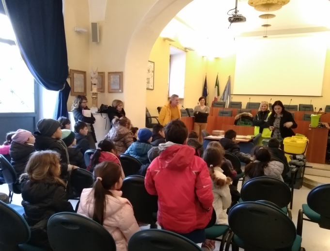 Dopo una panoramica sul ciclo dei rifiuti e sulla qualità delle abitudini quotidiane, argomento sollevato nel breve saluto del sindaco Enrico Piergallini, i bambini sono stati invitati a fare un piccolo test di conferimento, che tutti hanno superato dimostrando particolare attenzione alla pratica. Per loro, in premio, oltre ai complimenti dell’assessore alla Sostenibilità ambientale, Alessandra Biocca, e dei tecnici presenti, alcuni omaggi, tra cui un contenitore per l’olio esausto da utilizzare in famiglia.