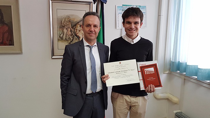 SAN BENEDETTO DEL TRONTO – Emanuele Colonnella, studente della classe V sezione C del Liceo Classico “Giacomo Leopardi” di San Benedetto del Tronto ha vinto il secondo premio della XIII edizione del Certamen Latinum Firmanum “V.Tosco” indetto dal Liceo Classico “A. Caro” di Fermo.