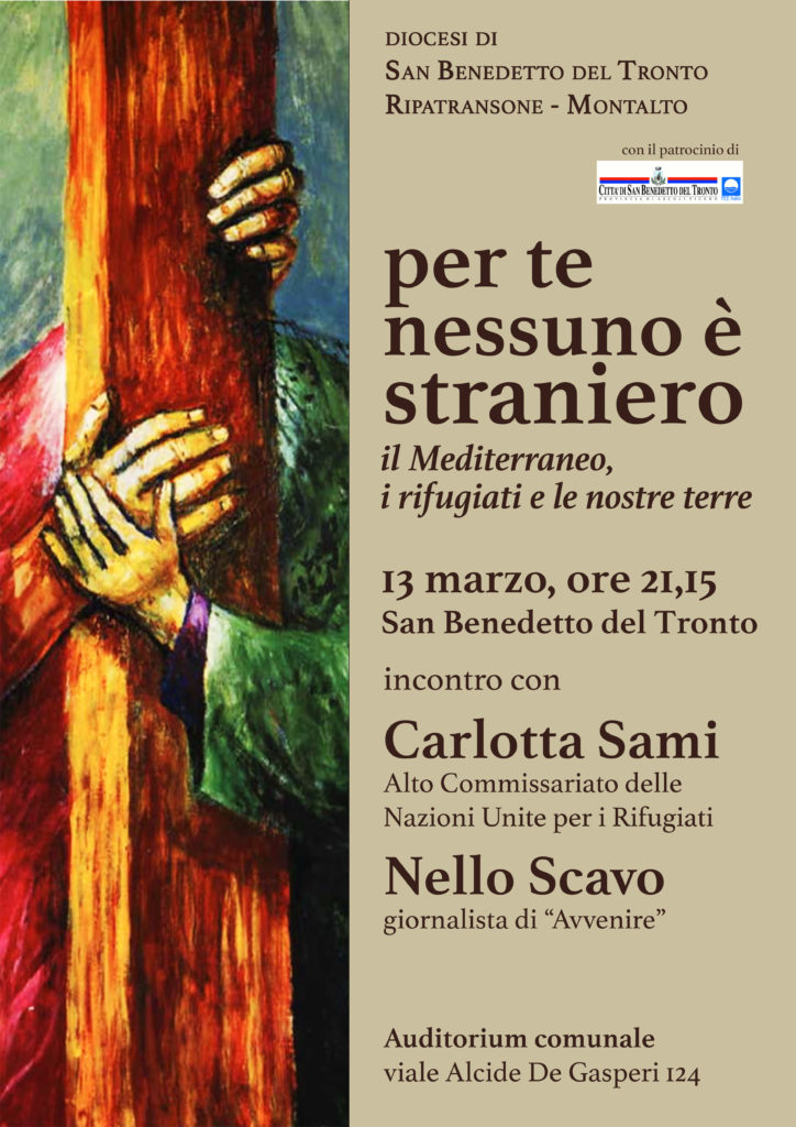 SAN BENEDETTO DEL TRONTO – Questa sera, alle ore 21.00, presso l’Auditoriun Comunale “Tebaldini” si parlerà di immigrazione. È stato infatti organizzato dalla nostra diocesi un incontro dal titolo “Per te nessuno è straniero. Il Mediterraneo, i rifugiati e le nostre terre”. Fra i protagonisti della serata il giornalista di Avvenire Nello Scavo che abbiamo intervistato.