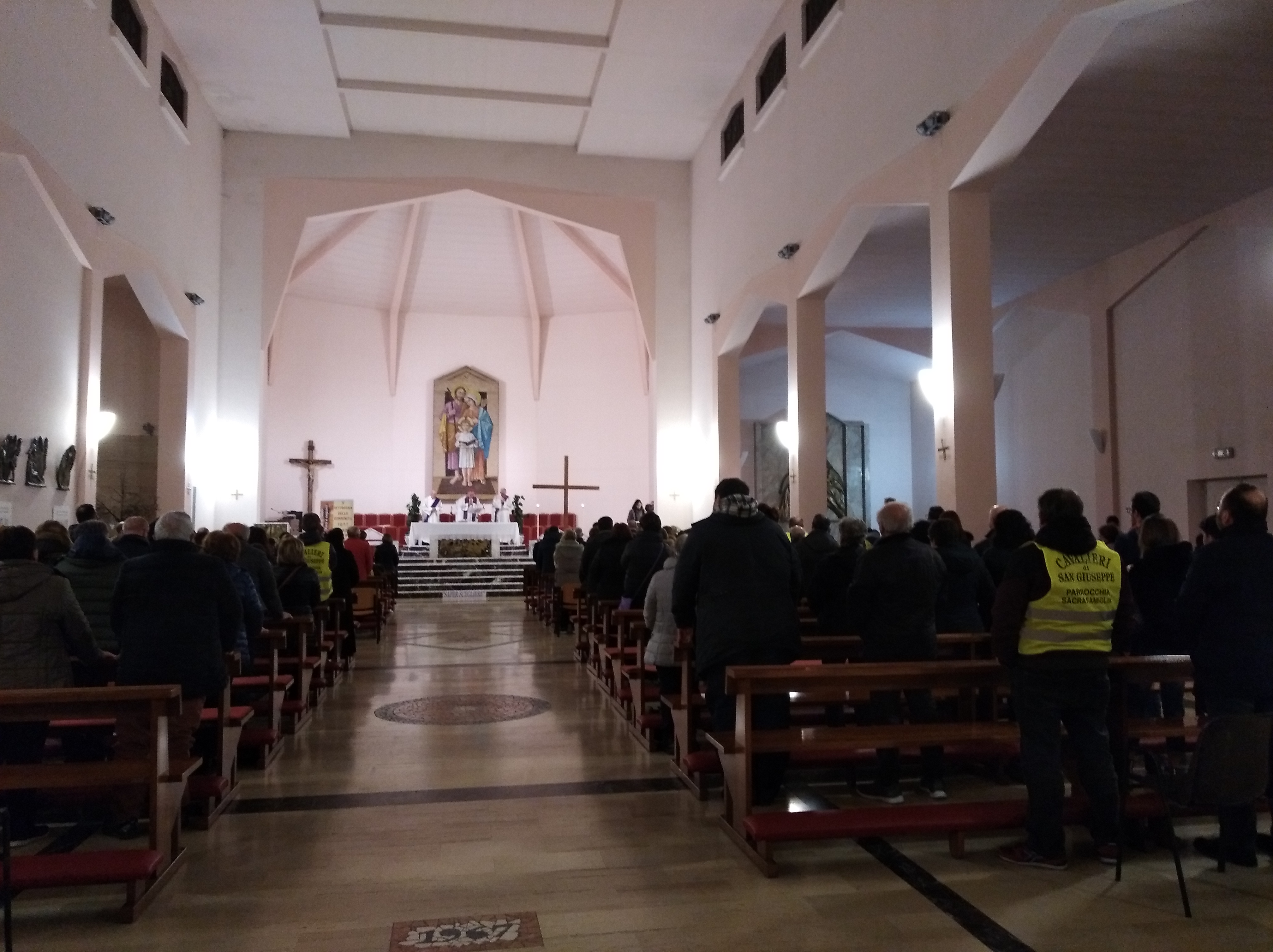 Noi siamo corpo, quindi è importante mantenere la salute, però siamo anche spirito e abbiamo bisogno di nutrire la nostra anima con la preghiera e lo sguardo rivolto al Signore. La seconda tentazione riguarda il potere, tutti noi siamo tentati dal potere, ma in fondo ogni ruolo in un diverso ambito ha un potere. Quando usiamo il nostro potere per aiutare, per gesti di carità, per migliorare qualcosa e per servire il Signore questo non è peccato. Quando invece rincorriamo il potere per umiliare l’altro, per usare violenza contro i nostri fratelli, per prevaricare sugli altri, cioè quando viene strumentalizzato per fare il male, questo tipo di potere è peccato. Il potere che ci allontana da Dio e ci fa credere che possiamo fare a meno di Lui. La terza tentazione ci porta a voler fare delle scelte sbagliate, avventate senza tener conto di Dio e della nostra vita eterna e pretendere che la nostra volontà sia uguale a quella di Dio. Cerchiamo spesso i beni effimeri e ci dimentichiamo a cosa siamo destinati, non dobbiamo mettere alla prova il Signore e quindi presumere di fare solo quello che piace a noi e non quello che piace a Dio. Quindi possiamo dire che le tentazioni ci vogliono far credere che è “bene” ciò che invece è “male”, sono subdole, sono sottili, ci vogliono imbrogliare stravolgendo la realtà. Ci illudono e ci allontanano dal Signore, regalandoci una breve e finta felicità.” Un ringraziamento va anche al Corpo di Polizia Municipale e ai Cavalieri di San Giuseppe della parrocchia Sacra Famiglia.