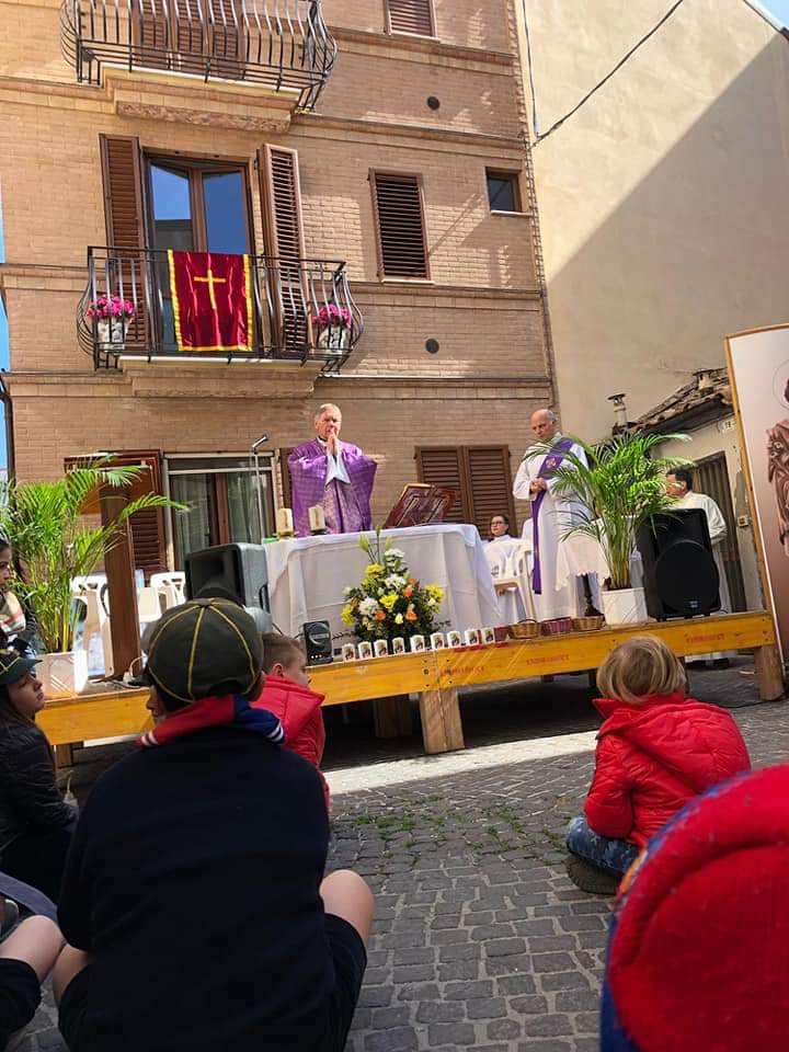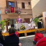 La Santa Messa, celebrata all’aperto in una giornata solare e tiepida, è stata animata dal coro parrocchiale, da ministri e ministranti; il popolo dei fedeli ha seguito con commozione e attenzione la proclamazione della Parola ben scandita dalla voce della lettrice, e la bella omelia del parroco.
