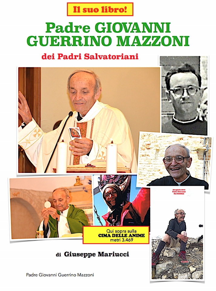 C’è, poi, da ricordare l’altra sua grande passione: la Montagna! Basta sfogliare il suo recente libro (“Padre Guerrino Giovanni Mazzoni dei Padri Salvatoriani”, questo è il titolo), dove ha voluto raccontare il suo intenso vissuto, per rendersi conto che ci troviamo di fronte ad un grande ed esperto scalatore: oltre centoventi montagne scalate! Dal Monte Vettore al Monte Bianco, dall’Etna allo Stelvio, dal Gran Paradiso al Bernina e via ….. scalando!