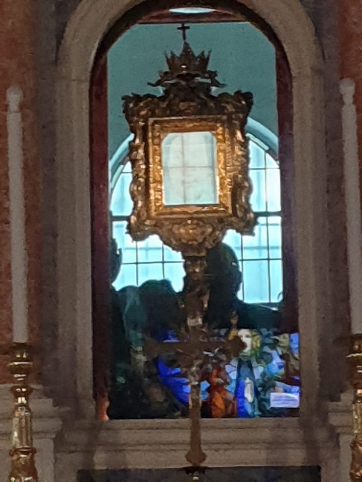 La seconda tappa del viaggio di istruzione ci vede riuniti intorno all’altare del santuario di Manoppello per la celebrazione Eucaristica e la venerazione del Sacro sudario . Visitiamo la mostra allestita con Padre Paolo,che ci guida nel percorso degli studi effettuati con diligenza e dovizia di particolari.