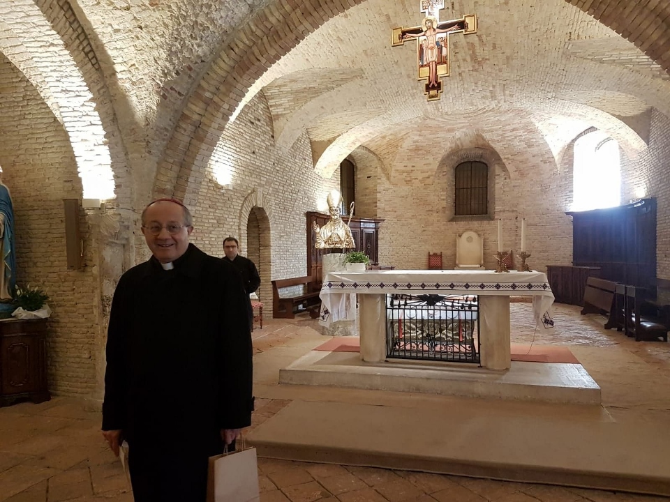 Presso la Cripta della Cattedrale di Chieti siamo stati accolti dall’Arcivescovo monsignor Bruno Forte (nominato Arcivescovo da Papa G. Paolo II°; Presidente della Commissione Episcopale per la dottrina della fede, l’annuncio e la catechesi della CEI dal 2005 al 2010; membro della Commissione Episcopale per L’Ecumenismo e dialogo dal 2010 al 2015; Presidente della Conferenza Episcopale Abbruzzese- Molisana dal 2016; membro ordinario della Pontificia Accademia di Teologia, della Commissione Teologica Internazionale e della Pontificia Accademia Mariana Internazionale; membro del Pontificio consiglio della Cultura, consultore del Pontificio Consiglio per la promozione dell’Unità dei Cristiani.)