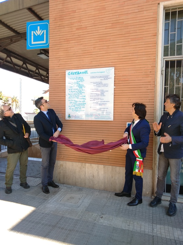 GROTTAMMARE – Dopo l’inaugurazione della targa presso la Stazione ferroviaria cittadina, nel giorno del suo centesimo compleanno, domenica 24 marzo, un altro evento sabato 6 aprile ricorderà l’omaggio di Grottammare al poeta statunitense Lawrence Ferlinghetti, autore della poesia intitolata alla Città e riprodotta in versione originale autografa nel pannello.