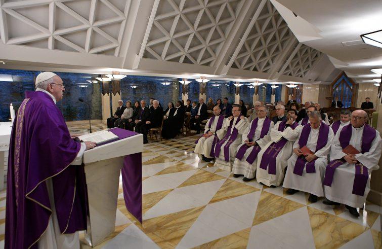Infatti, “Gesù prega per noi, in questo momento. E quando io prego, sia con la persuasione sia con il mercanteggiamento e sia balbettando sia discutendo con il Signore, ma è Lui che prende la mia preghiera e la presenta al Padre. E Gesù non ha bisogno di parlare davanti al Padre: gli fa vedere le piaghe. Il Padre vede le piaghe e dà la grazia. Quando noi preghiamo, pensiamo che lo facciamo con Gesù. Quando facciamo la preghiera di intercessione coraggiosa così, lo facciamo con Gesù: Gesù è il nostro coraggio, Gesù è la nostra sicurezza, che in questo momento intercede per noi”.