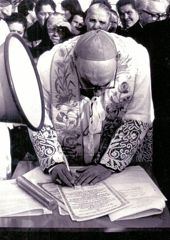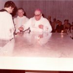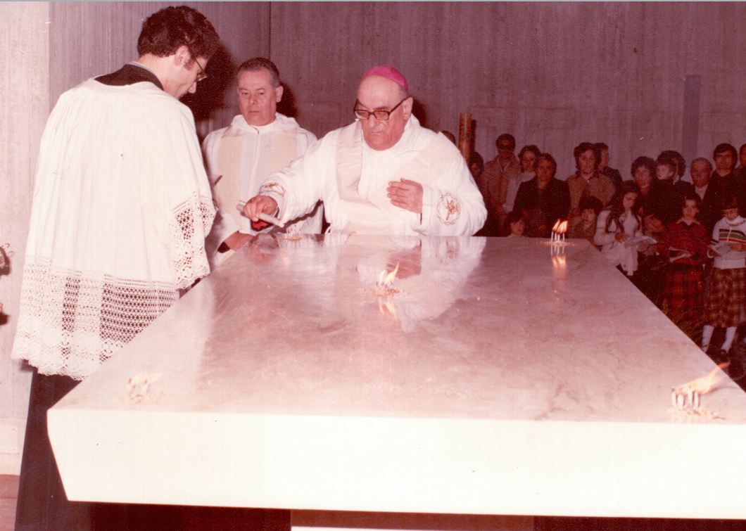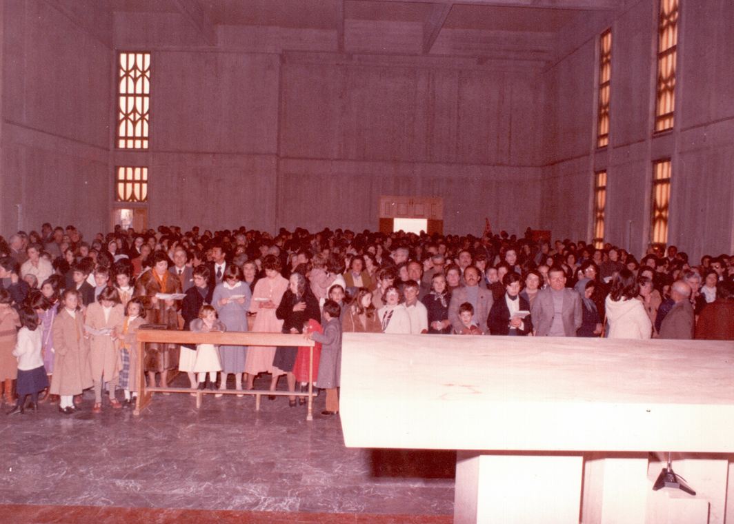 Nel corso della serata sono state proiettate foto storiche dei lavori e della cerimonia di Dedicazione, durante la quale ci fu anche la Cresima di una delle figlie di Gasparretti. «Per me è stata un’emozione particolare. In città ho realizzato tre chiese e devo dire che il vescovo Radicioni mi sceglieva frequentemente per i lavori, perché mi adeguavo meglio di altri alle sue esigenze di budget, che erano sempre all’insegna dei tagli. Per questa chiesa, vennero fatte delle scelte innovative per l’epoca, come quella del cemento a vista. Come tutte le opere umane, può piacere o non piacere, ma a mio avviso è stato fatto un ottimo lavoro per bilanciare costi ed estetica. Dal punto di vista tecnico ancora oggi, dopo 40 anni, si mantiene molto bene e necessita solo di manutenzioni ornamentali, non strutturali». Da qualche parte, sotterrata in prossimità dell’altare, c’è ancora la prima pietra che venne posata in una cerimonia datata 19 marzo del 1976, mentre una copia di quel simbolico elemento è conservata in Curia. Don Paci ha anche detto di esser stato in disaccordo con alcune scelte architettoniche, come quella del tabernacolo e delle sue lunghe colonne che troneggiano dietro l’altare: «Sinceramente io non lo avrei voluto così esagerato. Gesù non ha bisogno di tanti trionfi, per onorarlo è sufficiente seguire la sua Parola, amando ognuno di noi la nostra vita e quella di tutti i nostri fratelli».