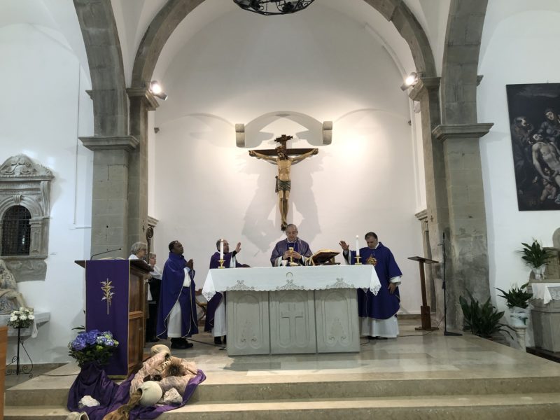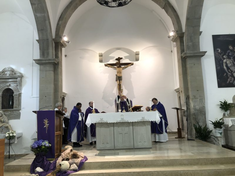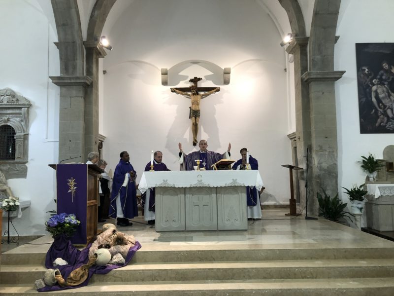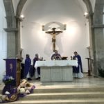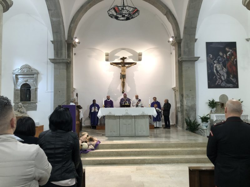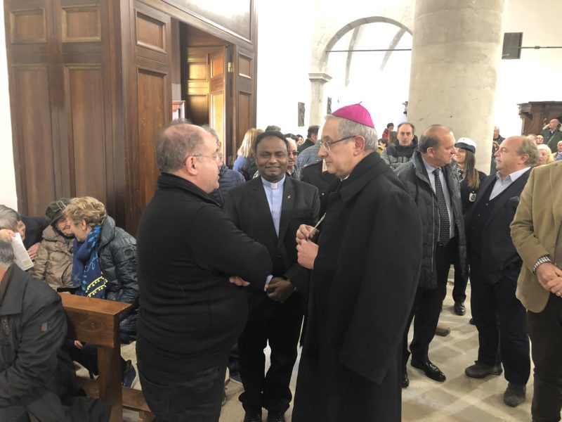 MONTEMONACO – Gioia e commozione per la riapertura della chiesa di San Benedetto Abate. Il grande momento è finalmente arrivato sabato 6 aprile e così la comunità ha potuto riavere il suo luogo di culto. Per l’occasione il Vescovo Carlo ha celebrato in questa chiesa la Santa Messa della V domenica di quaresima, insieme al parroco don Dino Straccia, a padre Gianfranco Priori (più conosciuto come “Frate Mago”) e a padre Kumar, sacerdote indiano (in Italia per motivi di studio) che è stato presentato alla comunità. Ha assistito alla celebrazione il diacono Walter Gandolfi.