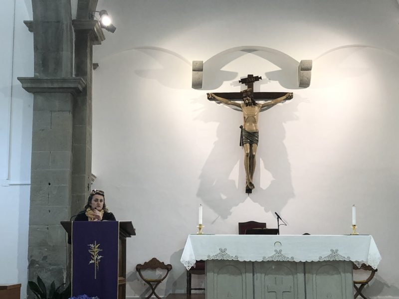 È intervenuta poi la direttrice dei Musei Sistini Paola Di Girolami che ha ringraziato tutti gli sponsor che hanno contribuito al restauro delle opere d’arte danneggiate dal terremoto: l’Anci Marche, il Pio Sodolizio dei Piceni e il Consolato di Polonia. Grazie alle donazioni è stato possibile riportare all’antico splendore il crocifisso della fine del Quattrocento che fa bella mostra di sé sulla parete di fondo della chiesa e altre opere che sono rimaste in situ.