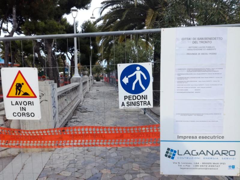 I lavori sono eseguiti dalla ditta Laganaro di Melfi (Potenza), la stessa che ha eseguito i lavori di riqualificazione del lungomare nord, e comprendono opere di sezionamento degli elementi che poi saranno riposizionati con contestuale rinzeppatura con malte tecniche, scavo di fondazione, esecuzione a tratti di muretto in cemento armato completo di fondazione da rendere solidale alla fondazione esistente mediante connettori, rimozione di opere provvisionali e chiusura fori praticati sulla base delle balaustre mediante stuccatura, nuove connessioni tra pilastri e balaustre.