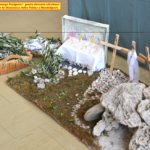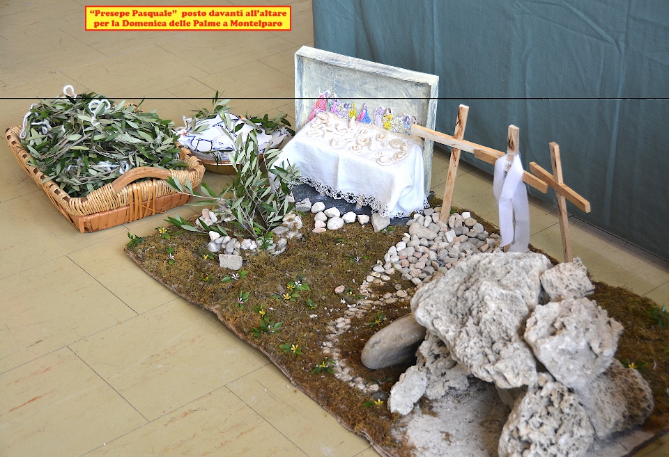 Oggi ai piedi dell’altare faceva bella figura di se un particolare “Presepe Pasquale” allestito dai bambini del catechismo con l’aiuto delle loro brave assistenti! Gli stessi bambini avevano preparato particolari Colombe, che recavano rami d’ulivo nel becco, e coroncine fatte con i rametti d’ulivo: erano destinate a coloro che, bambini o anziani, per qualsiasi motivo non erano potuti essere presenti!
