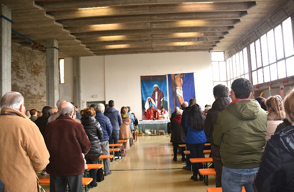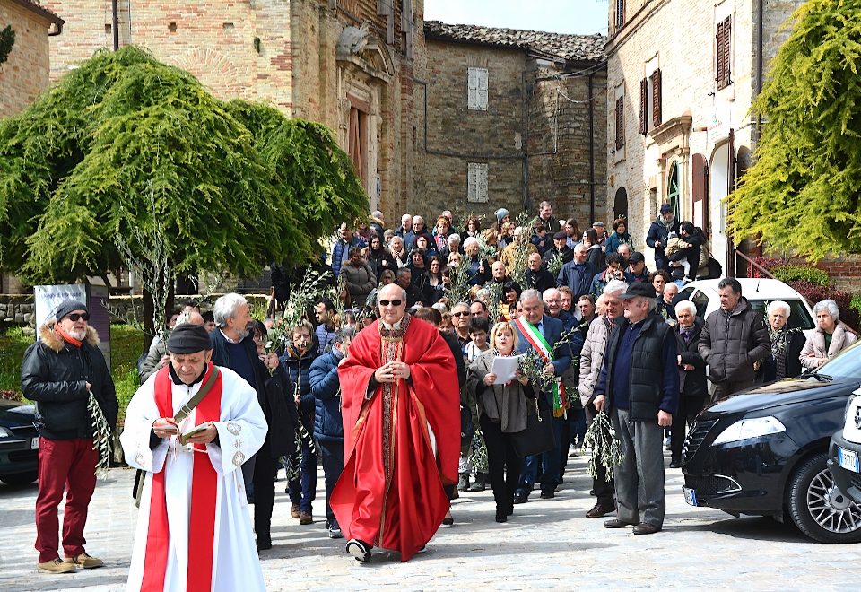 MONTELPARO – La temperatura ancora fredda e l’incombenza minacciosa di temporali, che durante la settimana l’avevano fatta da padroni, hanno obbligato la Parrocchia di San Michele Arcangelo di Montelparo a cambiare i programmi che volevano la celebrazione della Domenica delle Palme all’aperto presso il verdissimo parco giochi sito nei pressi dell’Istituto Mancinelli.