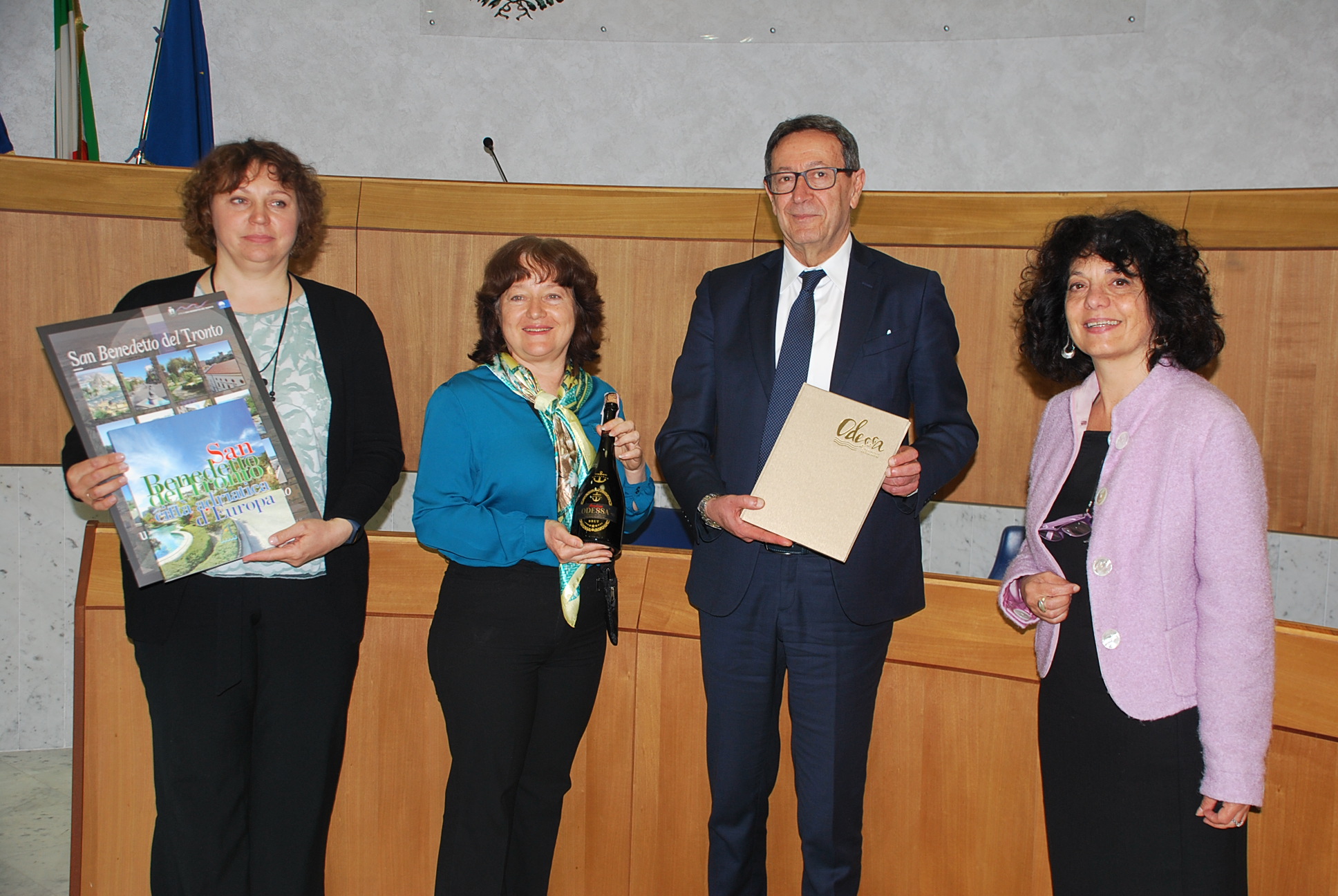 Nel corso dell’incontro sono stati premiati i vincitori dei migliori lavori con attestati di partecipazione e sono stati scambiati omaggi tra la Municipalità sambenedettese e l’istituto universitario ucraino.