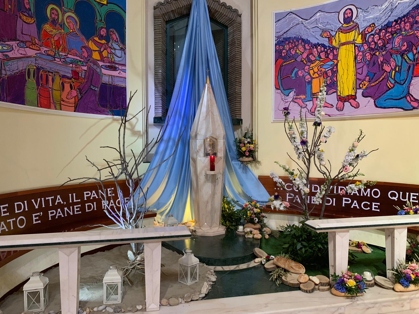 DIOCESI – Nelle varie parrocchie della diocesi, al termine della Messa In Coena Domini, sono stati allestiti gli Altari della Reposizione, popolarmente chiamati “sepolcri”. Non si tratta di allestire un sepolcro, ma un altare, dove l’Eucaristia possa essere adorata. Infatti, durante il Giovedì Santo si fa memoria dell’istituzione dell’Eucaristia, non della morte di Gesù che invece viene commemorata il Venerdì Santo. I fedeli idealmente rispondono all’invito fatto da Gesù a Pietro, Giacomo e Giovanni nell’Orto degli Ulivi di pregare e di vegliare insieme a lui, invito disatteso dagli apostoli che si sono addormentati. Invitiamo i lettori a mandarci le foto dell’Altare della Reposizione allestito nella propria parrocchia tramite: