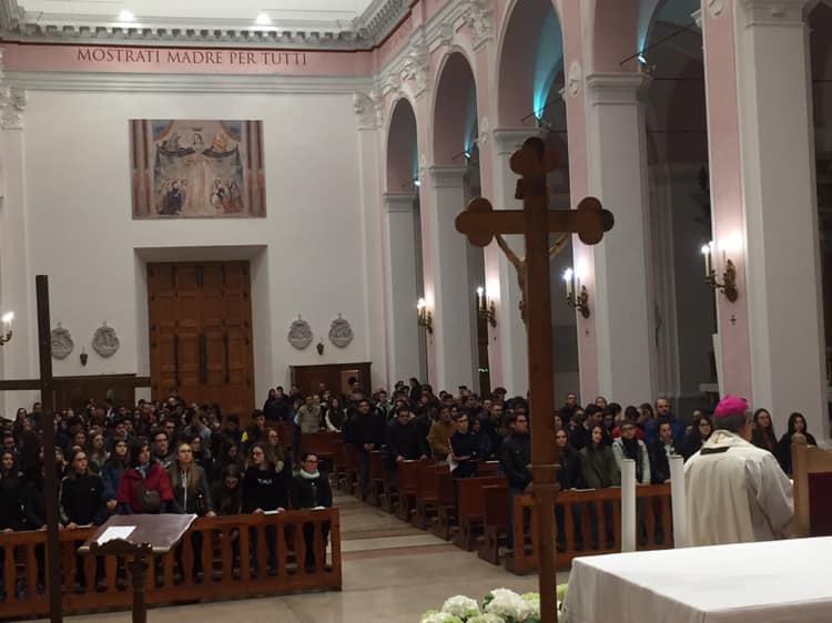 Un luogo sacro ricco di significato, anche perché dedicato ad un santo, morto giovanissimo ai tempi dell’Antica Roma per rivendicare la propria Fede in Cristo. Certo, oggi un giovane cattolico non corre più un rischio così estremo, almeno in Italia, ma dubbi e paure, possono comunque essere in agguato. Il consiglio del vescovo? «Andate a disturbare i vostri sacerdoti» è l’appello che monsignor Bresciani rivolge ai giovani: «Fatelo per un aiuto, per capire e, se serve, anche per un pianto liberatorio. Loro vi sapranno aiutare, dandovi il dono della Parola di Dio».