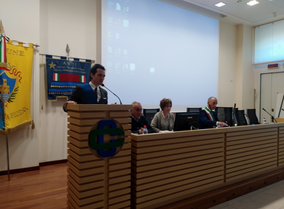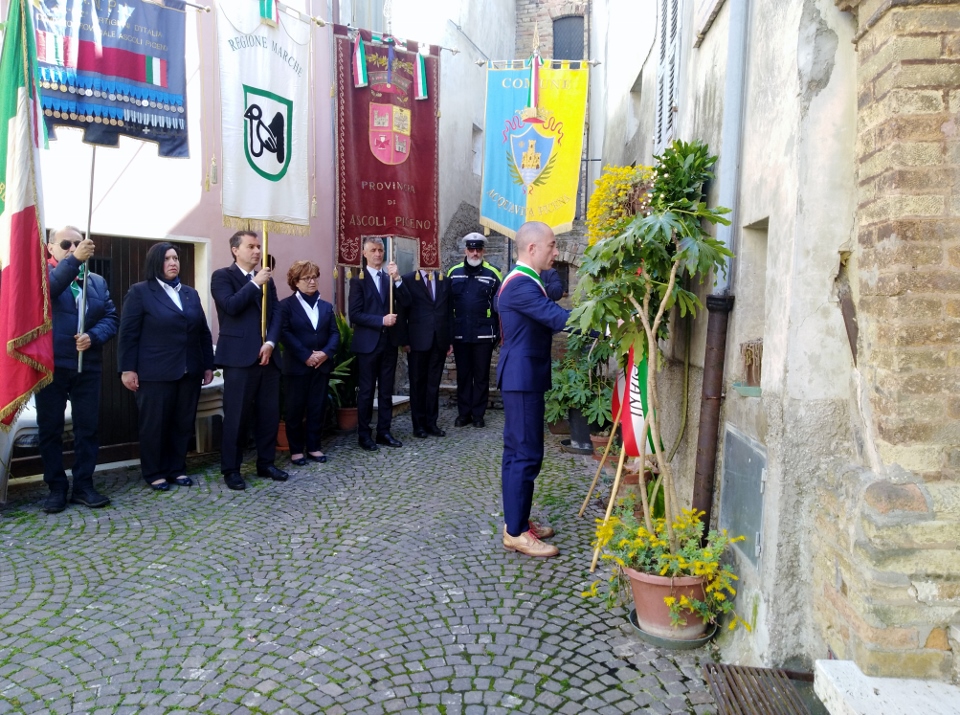 Il consigliere provinciale Novelli ha detto: “Sono fiero di rappresentare la provincia di Ascoli Piceno, insignita della Medaglia d’oro al Valore per attività Partigiana. Vorrei sottolineare in particolare che nella Costituzione Italiana ci sono parole mai usate prima nemmeno in altre Costituzioni o regolamentazioni di altri Paesi. Dobbiamo soffermarci sulle affermazioni di Aldo Moro e Concetto Marchesi, sono un segno di speranza. Dobbiamo ricordare le parole di Calamandrei…Da molti esponenti politici e istituzionali dell’epoca della Resistenza, del post guerra e del periodo in cui nasceva la nostra Costituzione dobbiamo ricordare gli animi, il coraggio, tutto il loro agire è per noi lezione di vita”. Il nipote del Vulpiani, Gabriele ha detto: “Grazie a tutti i presenti, grazie in modo speciale a Luigi Torquati per il profondo rispetto per mio nonno, per l’organizzazione di questa manifestazione e per il suo impegno affinché la memoria di mio nonno non sparisca. Io non ho mai conosciuto mio nonno, è stata la mia famiglia che me ne ha parlato. Mio nonno era un contadino che aveva una vita semplice, non si era mai occupato di politica, ma in quegli anni era la politica che si occupava della gente. Mio nonno aiutò dei partigiani a nascondersi, sapeva a cosa sarebbe andato incontro, ma li aiutò. L’Italia in quel momento era un Paese in forte difficoltà, si combatteva contro i tedeschi e contro gli italiani fascisti stretti collaboratori dei tedeschi. Qualcuno raccontò ai soldati tedeschi quello che aveva fatto mio nonno e una mattina andò nella sua campagna e non fece più ritorno a casa, venne torturato e quando incontrò i suoi figli lo trovarono ferito e con il cranio così rotto che si vedeva il cervello. Venne portato in giro per far vedere a tutti cosa accadeva a chi andava contro il regime fascista. Mio nonno nonostante le torture non disse mai il nome dei partigiani, il suo corpo non fu mai trovato, nemmeno i suoi figli hanno mai conosciuto la sorte di mio nonno e dove andare a cercare il suo corpo. La mia famiglia non ha mai avuto delle ossa, una bara sulla quale piangere. Ragazzi, ora siete abituati a vedere i supereroi fare cose straordinarie, cose che le persone comuni non sanno fare. Un tempo invece si era supereroi rimanendo persone normali, rimanendo umani. Ci sono tante persone come mio nonno che rimarranno per sempre nell’anonimato, persone i quali nomi non finiranno mai nei libri di storia, ma che hanno fortemente contribuito alla liberazione dell’Italia dall’oppressore proprio come tutti gli altri. Ognuno a proprio modo ha messo a rischio la propria vita per conquistare la libertà. L’ex presidente Rossi ha detto: “Oggi sono qui in qualità di amico di Teodoro, figlio di Mariano Vulpiani. Quando sento raccontare questa storia sono pervaso da una forte commozione. Mi voglio rivolgere soprattutto ai giovani, Mariano era un contadino, la sua unica colpa era quella di essere rimasta una persona umana. Insieme alla Resistenza armata c’erano i civili che invece di rimanere indifferenti si impegnarono a portare il loro sostegno ovunque servisse. Io da mio padre ho ricevuto un insegnamento che oggi voglio dispensare anche a voi: non bisogna girarsi dall’altra parte quando vengono commesse ingiustizie a noi e al nostro prossimo. Davanti alle discriminazioni, davanti ad ogni forma di mancanza di rispetto bisogna agire affinché le cose cambino. Ci stiamo dimenticando dei valori della nostra Costituzione. Tutto parte da un’ingiustizia a qualcuno, di solito ai più deboli, ai più poveri a chi insomma trova difficoltà a difendersi e poi la situazione diventa sempre più grande, ingestibile. A tal proposito vorrei leggervi un testo di Brecht che proviene da un sermone di un pastore luterano Niemoller: Prima di tutto vennero a prendere gli zingari e fui contento, perché rubacchiavano. Poi vennero a prendere gli ebrei e stetti zitto perché mi stavano antipatici. Poi vennero a prendere gli omosessuali e fui sollevato, perché mi erano fastidiosi. Poi vennero a prendere i comunisti e io non dissi niente, perché non ero comunista. Un giorno vennero a prendere me e non c’era nessuno a protestare”. Poi ha preso la parola la dott.ssa Forlini: “Si dovrebbe festeggiare il 25 aprile tutti i giorni, nella Costituzione Italiana ci sono parole che lette così alla svelta possono sembrare nulla e invece rappresentano molto, un esempio tra i tanti è la parola ripudia, l’Italia ripudia la guerra, questo recita l’articolo, poteva essere usata anche la parola rifiuta e invece è stato scelto un altro termine. Chi ha composto la Costituzione sapeva l’importante compito che andava a sostenere. Ci sono state tante donne che in modi diversi si è adoperata per dare una mano ai partigiani, alla Resistenza.