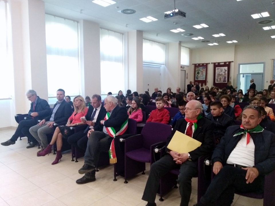 Ci sono state donne come Teresa Mattei che già rifiutò le leggi razziali già prima che scoppiasse il conflitto. Tante donne delle nostre montagne ascolane che nelle loro parannanze portavano bombe a mano, armi e messaggi ai partigiani nascosti tra le montagne. Le donne non hanno trovato posto nei libri di storia, ma è fondamentale ricordare che quando gli uomini erano al fronte o organizzati clandestinamente per combattere l’oppressore loro portarono avanti l’Italia, l’economia e le aziende, dovevano conciliare il loro ruolo di madri con l’impegno a sostituire nei luoghi di lavoro i propri mariti o padri”. Pietro Perini ha detto: “Tutto ciò che la Liberazione ha ottenuto ora ci permette di vivere liberamente, se ora potete girare e giocare senza restrizioni lo dovete a chi si è sacrificato per ottenere la libertà che all’Italia era stata tolta. I ragazzi che hanno combattuto all’epoca erano poco più grandi di voi, conoscere le loro gesta vi servirà per contrastare ogni forma di restrizione alla libertà. Ragazzi, dovete essere attenti a non farvi negare la libertà, a non farvi illudere”. La preside Bellini ha detto: “Io ringrazio tutti coloro che hanno contribuito alla realizzazione di questa manifestazione perché ci ha permesso di affrontare questi temi e di far conoscere ai ragazzi figure importanti come Mariano Vulpiani”. Poi i bambini hanno letto poesie e racconti sulla guerra, in particolare Christian ha raccontato la storia del suo bisnonno Pasquale soldato infermiere, morto sotto un bombardamento nel campo di concentramento dove era stato fatto prigioniero e considerato IMI, gli IMI: Internati Militari Italiani, erano tutti i soldati italiani che catturati o dovevano scegliere di entrare a far parte dell’esercito tedesco e quindi significava anche torturare i prigionieri, o essere considerati internati e chiusi nei lager dove vivevano in condizioni disumane. I tedeschi avevano fatto questa scelta di considerarli internati e non prigionieri di guerra, perché in quest’ultimo caso sarebbero stati protetti dalla Convenzione di Ginevra. Un ringraziamento anche alla Regione Marche per il patrocinio e alla BCC Banca del Piceno per la disponibilità all’utilizzo dell’Auditorium.