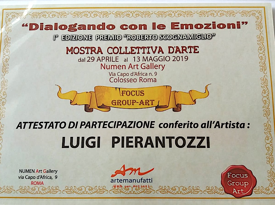 Quella sopra è la straordinaria motivazione che il “Focus-Group-Art” ha espresso nel consegnare, a Luigi Pierantozzi, l’Attestato conferitogli!