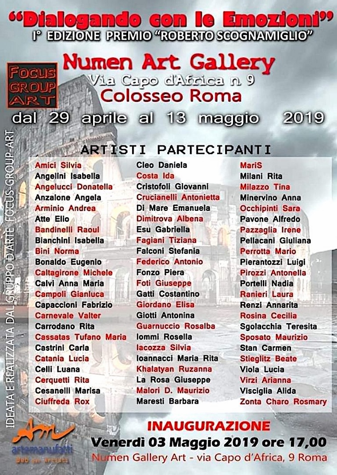 L’occasione ce la dà, questa volta, la mostra collettiva d’arte “Dialogando con le Emozioni”, prima Edizione del Premio “Roberto Scognamiglio” alla “Numen Art Gallery” di Roma.