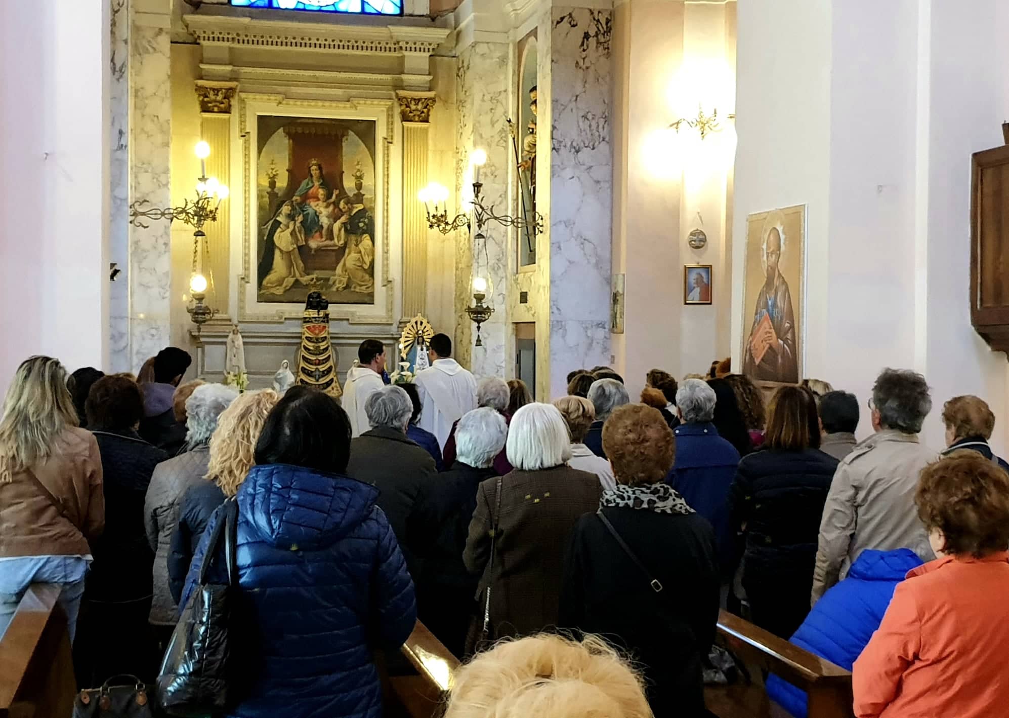 Al termine del momento di riflessione tutti i fedeli si sono spostati davanti alla nicchia dedicata alla Madonna di Pompei e hanno recitato, guidata nella preghiera dal diacono, la celebre orazione scritta dal Beato Bartolo Longo.