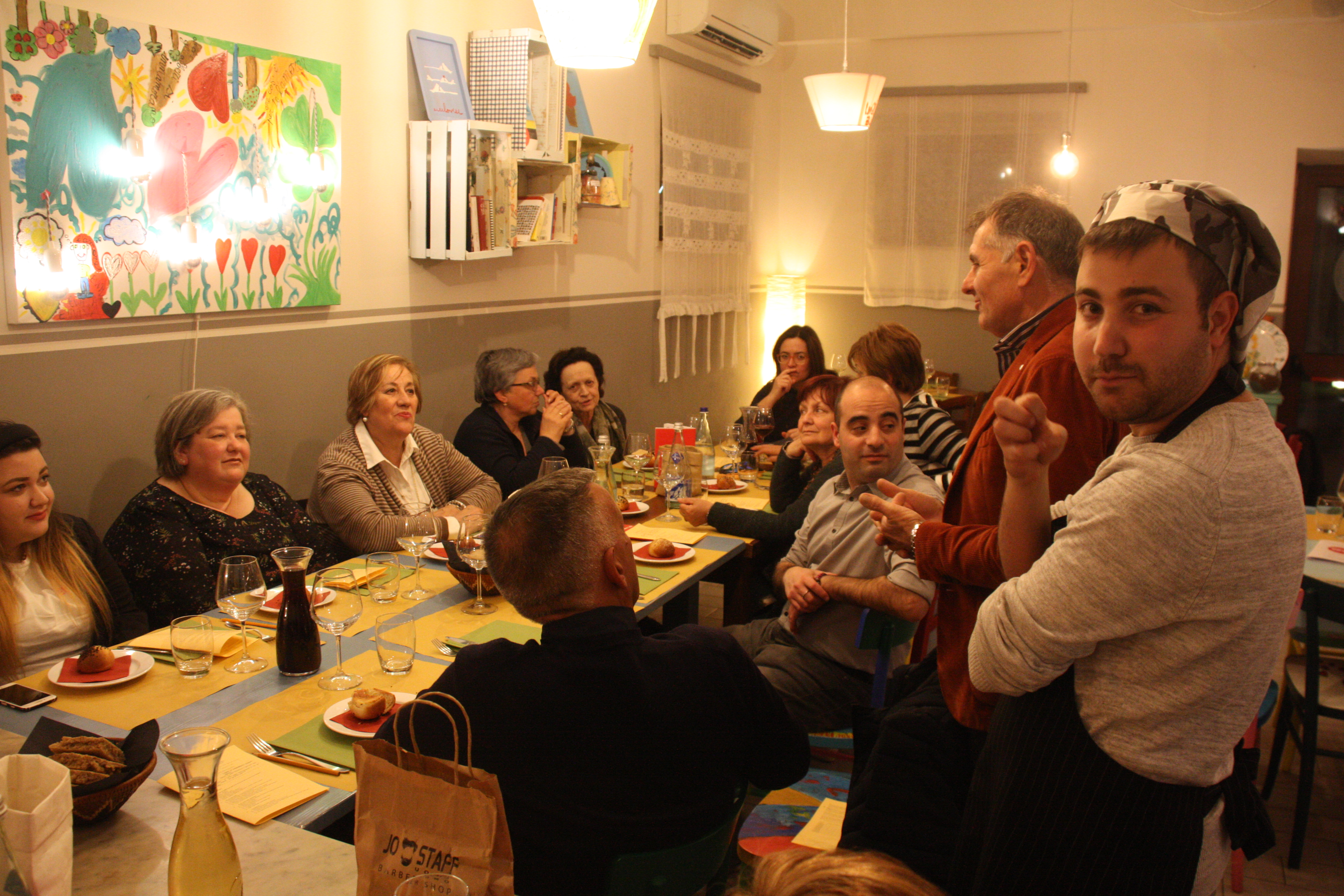 Durante la cena si sono gustati piatti meravigliosi preparati dal personale formato anche da ragazzi disabili. La serata è stata accompagnata dalla loro piacevole compagnia in cui si è riuscito a comprendere quanto la disabilità sia solo una nostra barriera psicologica e che la distanza tra noi e loro sia a “Centimetro Zero” poiché tutti siamo un po’speciali. Infatti sia i gestori del locale Emidio Mandozzi e Roberta D’Emidio che il simpaticissimo aiutocuoco Daniele e la dolce addetta alla sala Martina hanno condiviso questa loro esperienza di impresa sociale fatta di profonda umanità e grande professionalità.
