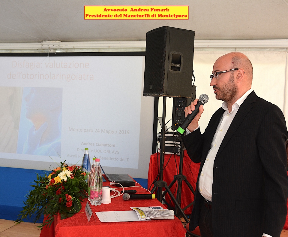 Dopo il saluto del Dottor Michele Tomassini, Dirigente Medico-Fisiatra U.O.C di Riabilitazione Asur Area Vasta 4 – Fermo che ha, tra l’altro, raccontato di una sua difficile esperienza all’inizio della carriera (in un caso proprio al Mancinelli di Montelparo) a causa della Disfagia, è iniziato il convegno che ha visto, via via, i seguenti relatori: