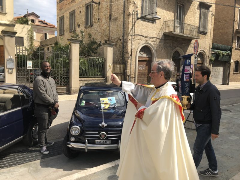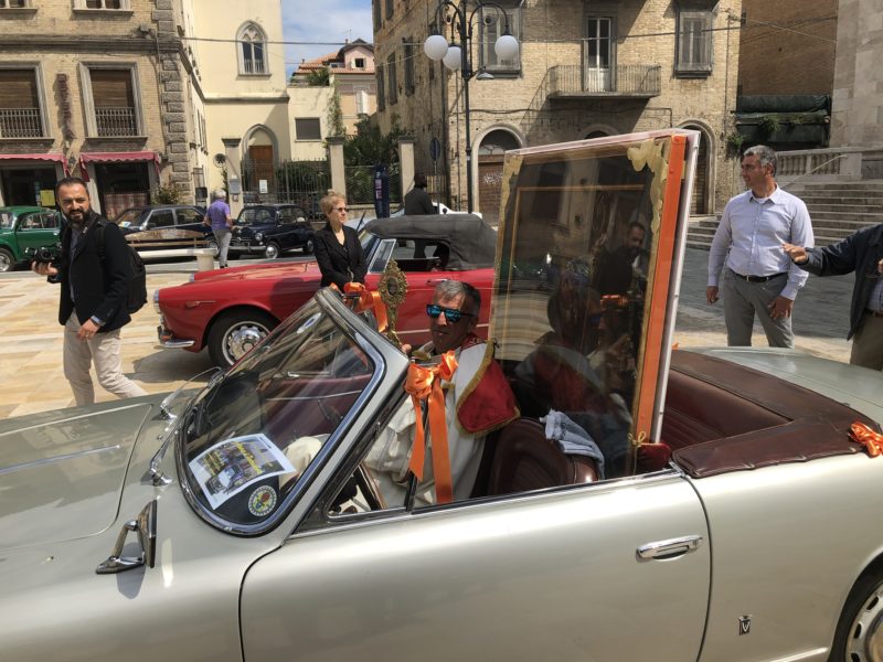 Al termine della celebrazione eucaristica Mons. Romualdo Scarponi ha impartito la benedizione alle numerose vetture presenti in Piazza Nardone per l’occasione. Ovviamente non poteva mancare il parroco di San Savino, don Lanfranco Iachetti che ai nostri microfoni ha spiegato chi è San Savino e come è stato e viene ancora onorato: “San Savino è nato nel 309 a Milano fu portato nelle colline ripane nel 1825 durante una missione al popolo, attraverso i padri cappuccini.
